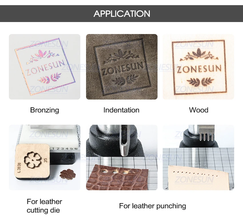 1. Используется для бронзирования, углубления и брендинга кожаных изделий, резиновых изделий, технических изделий, пластмассовых изделий, бумаги и других поверхностей.