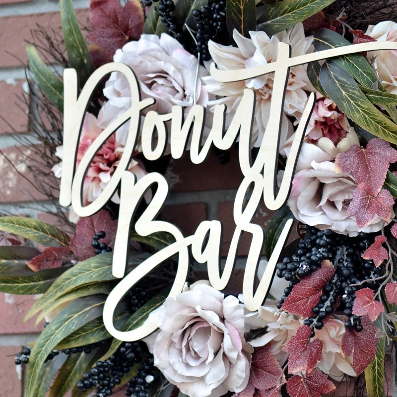 Изготовлен из высококачественного самшита, прецизионный лазер и шлифованный гладкий. Размер: 33x30x0,4 см/13x11,8 "x 0,15". Красивый стиль каллиграфии "пончики бар" деревянный знак для вашей свадьбы или мероприятия. Избегайте DIY хлопот создать свой собственный знак пончика и используйте этот креативный знак на вашей свадьбе пончик подставка для десерта. Используется для любого мероприятия, как реквизит для фотосессии, уникальный фон, висящий в барной области, сладости стол на вашей свадьбе больше. Отлично подходит для гусениц, DIY невесты, планировщиков мероприятий, вечерние профессионалов.
