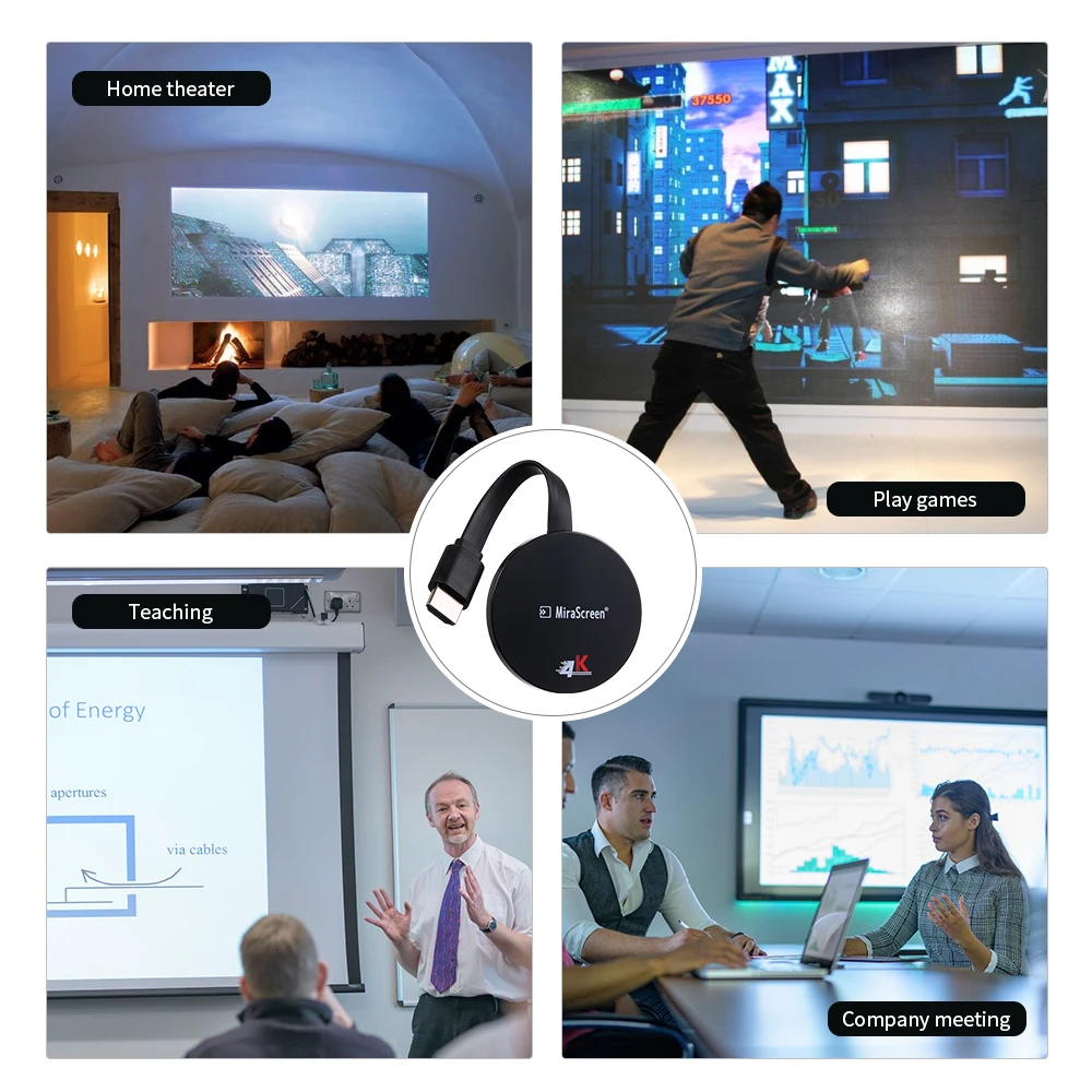 Этот беспроводной ключ поддерживает протоколы Miracast / DLNA / Airplay. Он используется для домашнего кинотеатра, классного обучения, игр, а также для встречи с компанией.