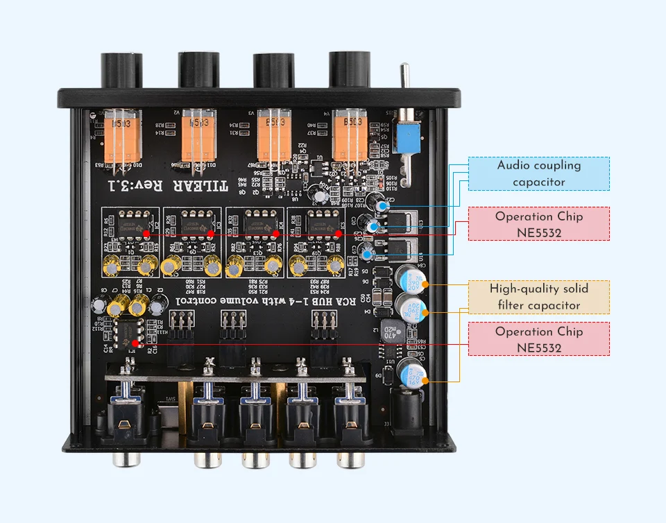 5. Каждый канал использует независимое транспортное лечение, не мешает друг другу, оригинальный стандарт машины с TI NE5532, сжигает друзей, может менять различные перевозки и отпускать в соответствии с их собственными предпочтениями, напряжение питания при транспортировке и выходе 12 В;