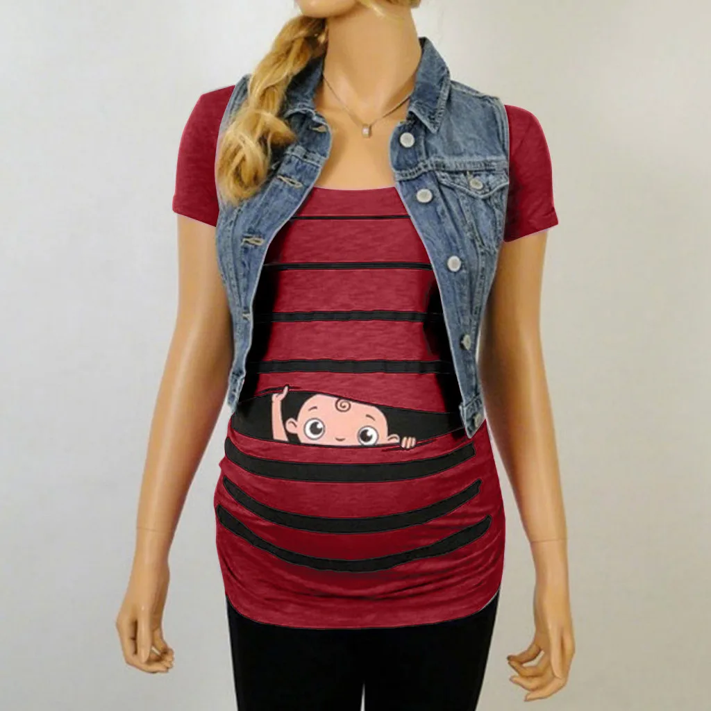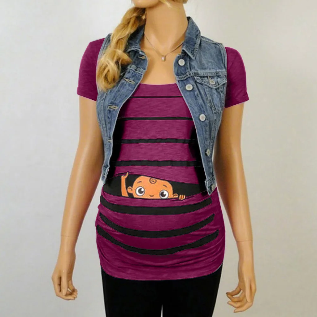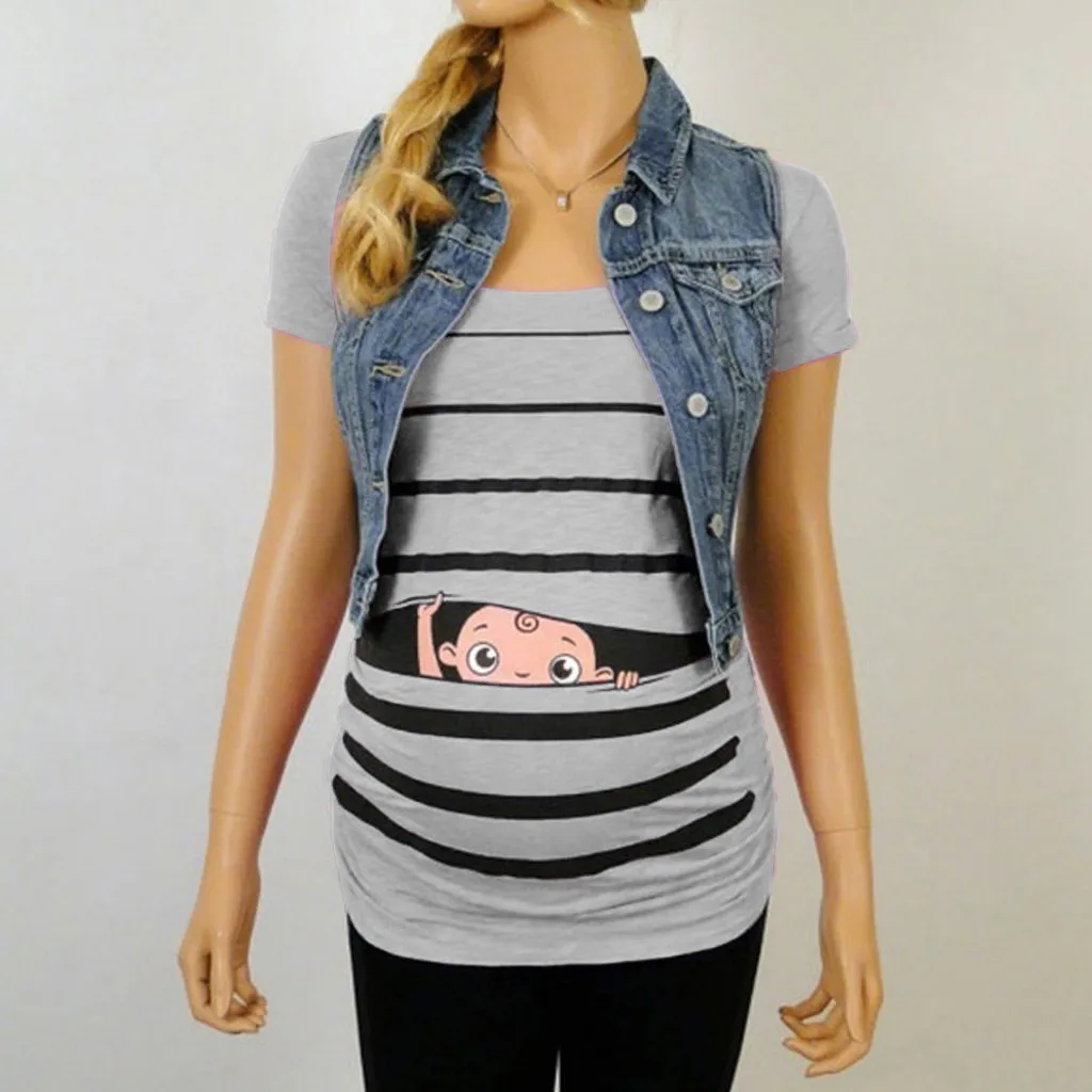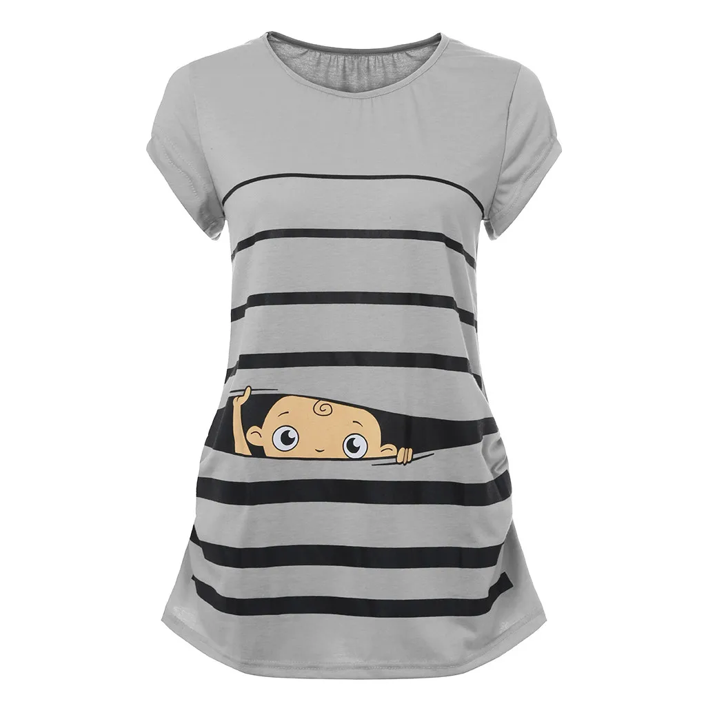 Милая забавная футболка в полоску с короткими рукавами для беременных