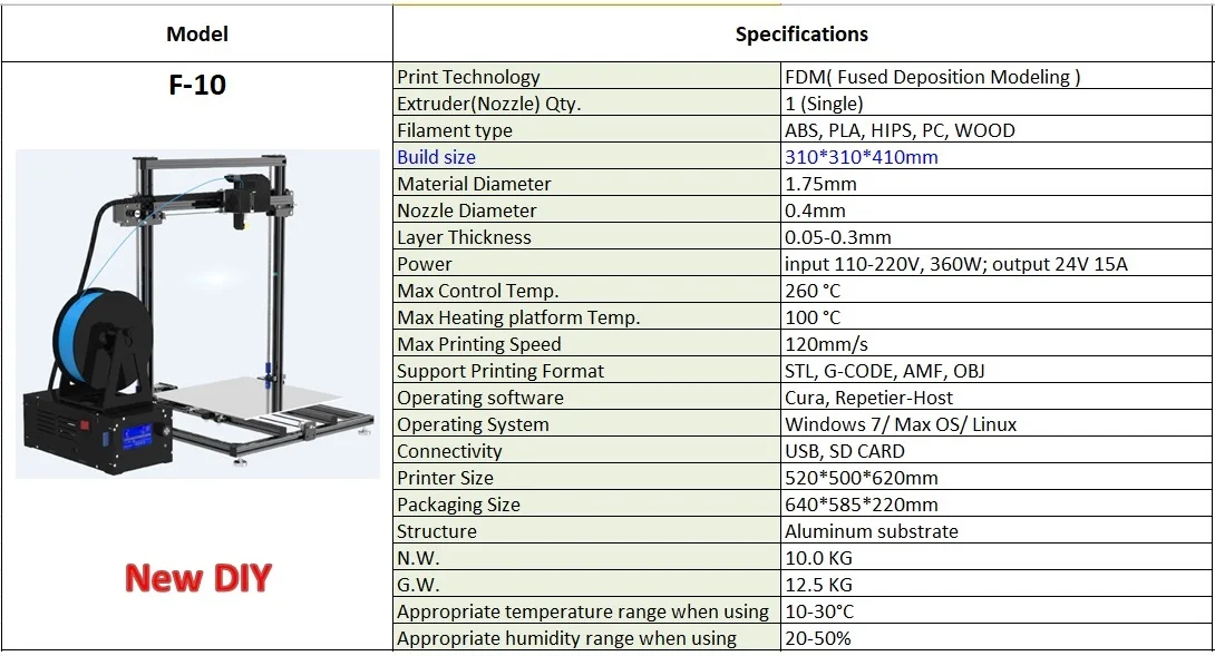 F-10 DIY 3D принтер Alumilum stuctrue высокая точность и большой размер сборки 3D принтер, сделать вашу мечту!