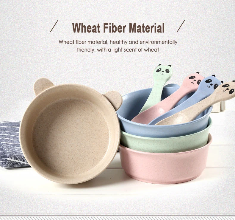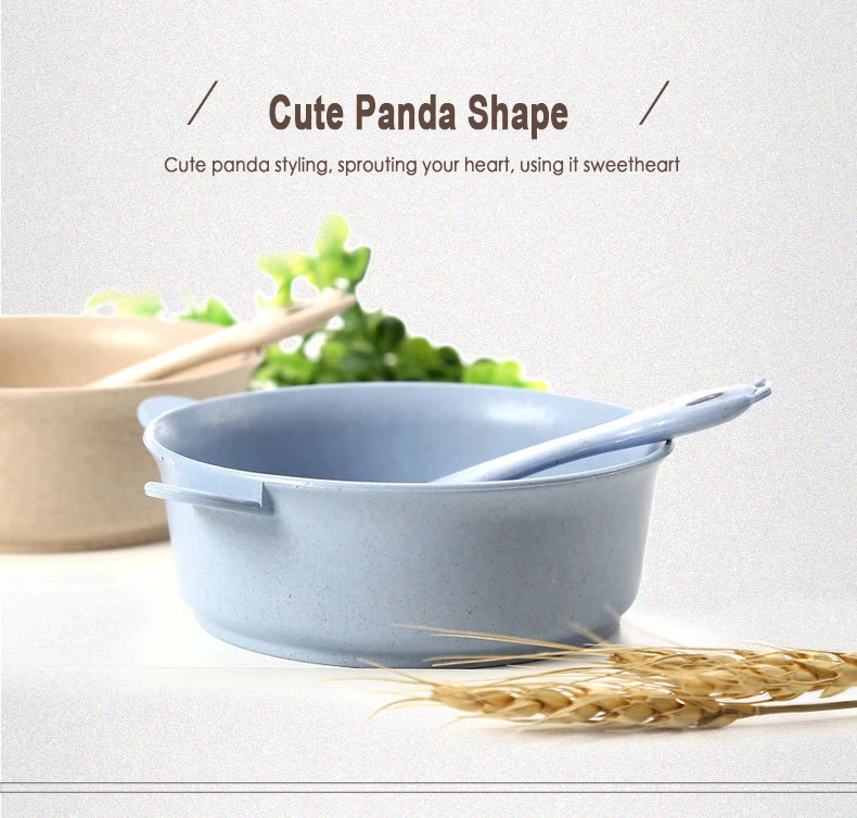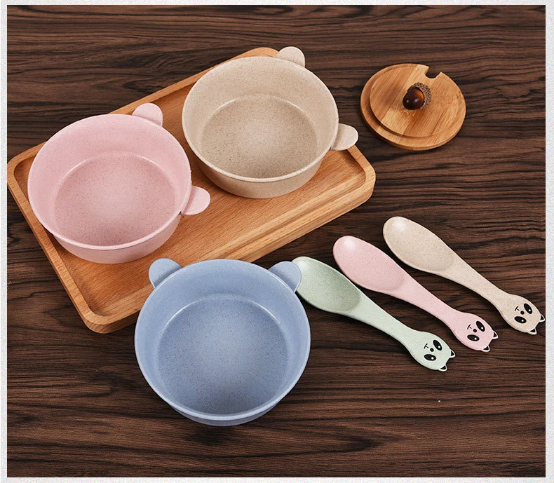 Милая Детская миска, ложка, набор, панда, форма, рисовая чаша, изоляция, анти-обжигающая миска для супа, пшеничная солома, закуска, тарелкаРаменПосуда