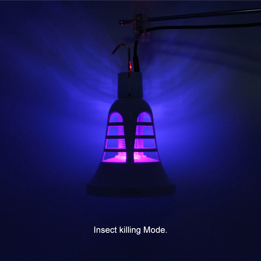 Description: Item type: Mosquito Killer Lamp Operating voltage: 5V Applicable Area: 100 Square Feets Size: 100*100*135mm LED bead number: 78 Functional effect: plant light + mosquito killer lamp Lamp holder specification: E26 / E27 Service life: 50000 hours Protection level: IP42 Shell material: PC Features Two modes: Flying Pests Killing, Flying Pests Killing& Led Plant Grow Light. Our Plant Grow Light has a full spectrum of wavelengths and UV and IR light for plant growth. Significant effect on plant growth and increase yield of plants. Safe to health, no chemicals, no smoke, no odors, no insecticides, non-toxic, harmless to human and pets. * Operate smoothly, plastic shield protects users upon touching the unit. * Suitable for indoor, outdoor, home, bedroom, living room, kitchen, office, garden, camping, tent, the wild, etc. * Please close all windows and doors and other light sources before using. * Please do not use the lamp above food or drinks or at where easy to occur explosion. * Please turn off the power, and wait for 15 minutes before cleaning the lamp. The dead bodies of flying pests can be cleaned by a soft brush directly. * Please keep the Fly-Killer Lamp away from children, don’t let children touch it. Package includes: 1 * Lamp 1 * Cleaning Brush