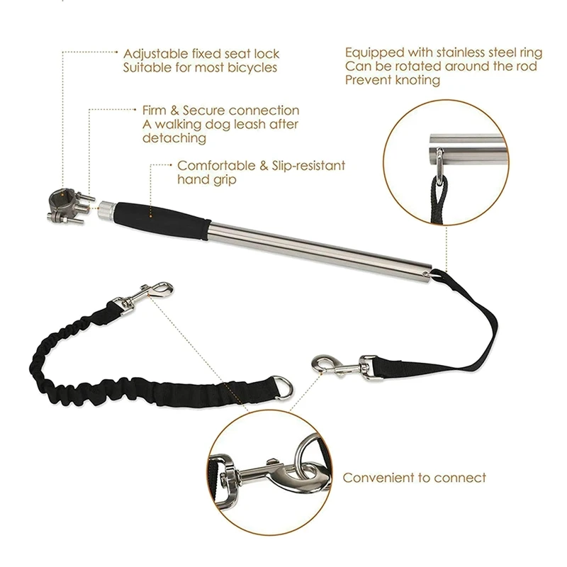 Защитная безопасная система: фиксированная Блокировка сиденья и в основном построенная из Промышленной прочности нержавеющей стали трубы и прочный складной Тип поводок с буферной резинкой, который может обеспечить безопасную езду для вас и вашей собаки. Резиновая вставка обеспечивает защиту от синяков и царапин вашего велосипеда.