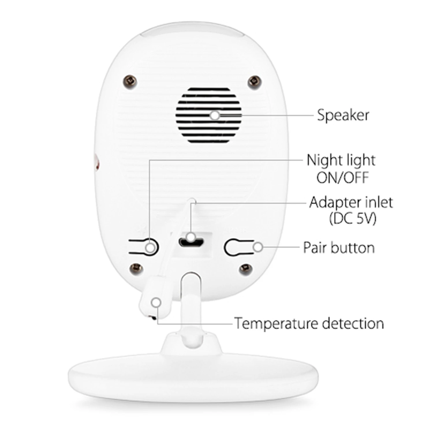 Позволяет вам получать четкие изображения в темноте, присматривать за ребенком всю ночь, длительное время работы от аккумулятора, литий-ионный аккумулятор 3,7 в 2000 мАч (входит в комплект), обеспечивает более длительное время работы, другие функции, регулировка громкости и контроль яркости ЖК-дисплея, переключаемый температурный блок