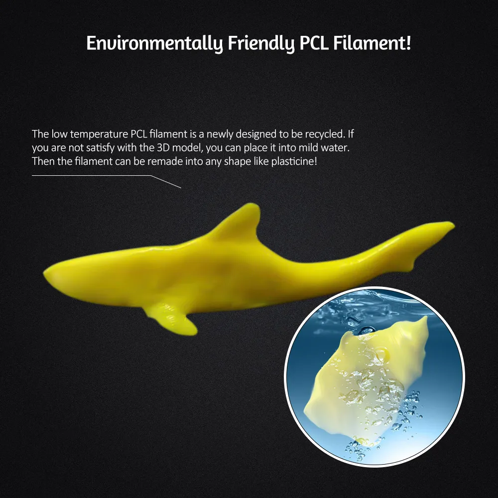 Новый типPCLНить накаливания,Низкая температура печати (80 - 100 ℃), очень безопасно для детей! (В то время как температура печати нити, как ABS/PLA, составляет около 190 ℃ ~ 210 ℃ или выше.)