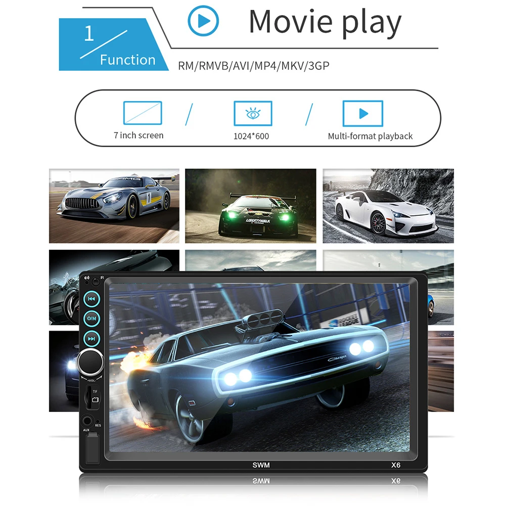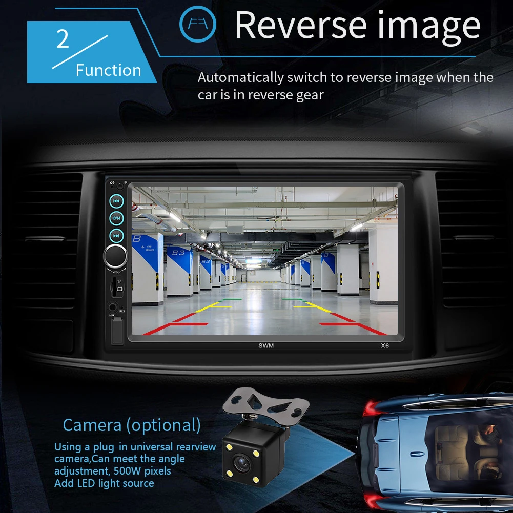 1. 7 "2 DIN HD автомобильное радио MP5 плеер с цифровым емкостным сенсорным экраном. 2. Поддержка Bluetooth аудио музыки и громкой связи. 3. Поддержка функции радио и встроенный вспомогательный вход. 4. Поддержка функции ввода камеры заднего вида. 5. 24-часовой цифровой дисплей отображает часы и дату. 6. Поддержка TF карты (до 32 Гб) слот и стандартный USB интерфейс. 7. Может поддерживать мобильный телефон или другие usb-устройства. 8. Поддерживает различные настройки звуковых эффектов. 9. Цветная подсветка кнопки питания украшена в вашем автомобиле.