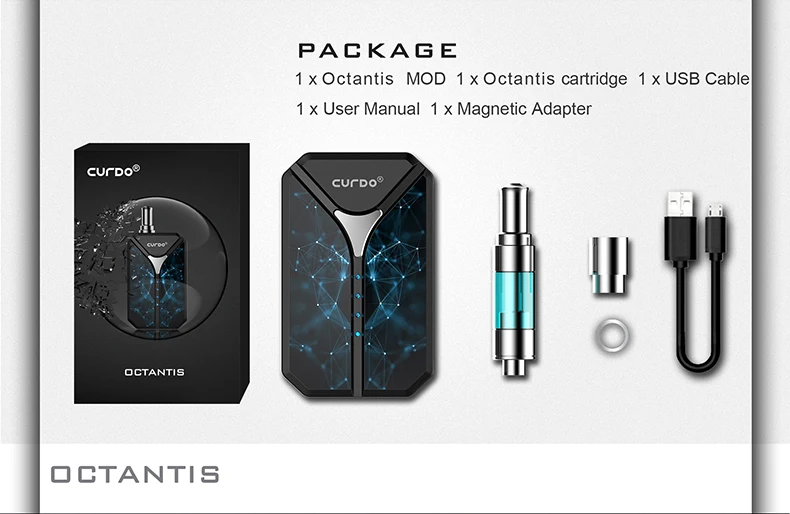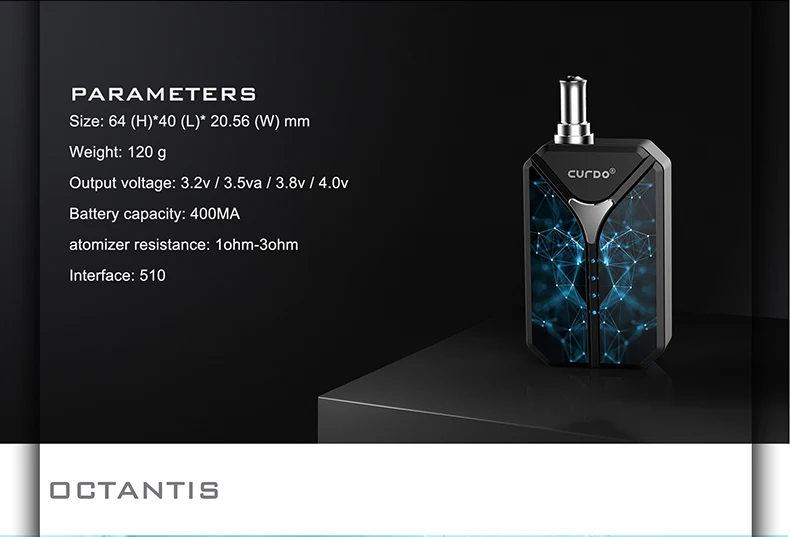 Аутентичный Curdo Octantis вапоризатор стартовый набор с батарейным блоком 400 мАч батарея переменное напряжение курение коробка для 510 нить толстый масляный картридж