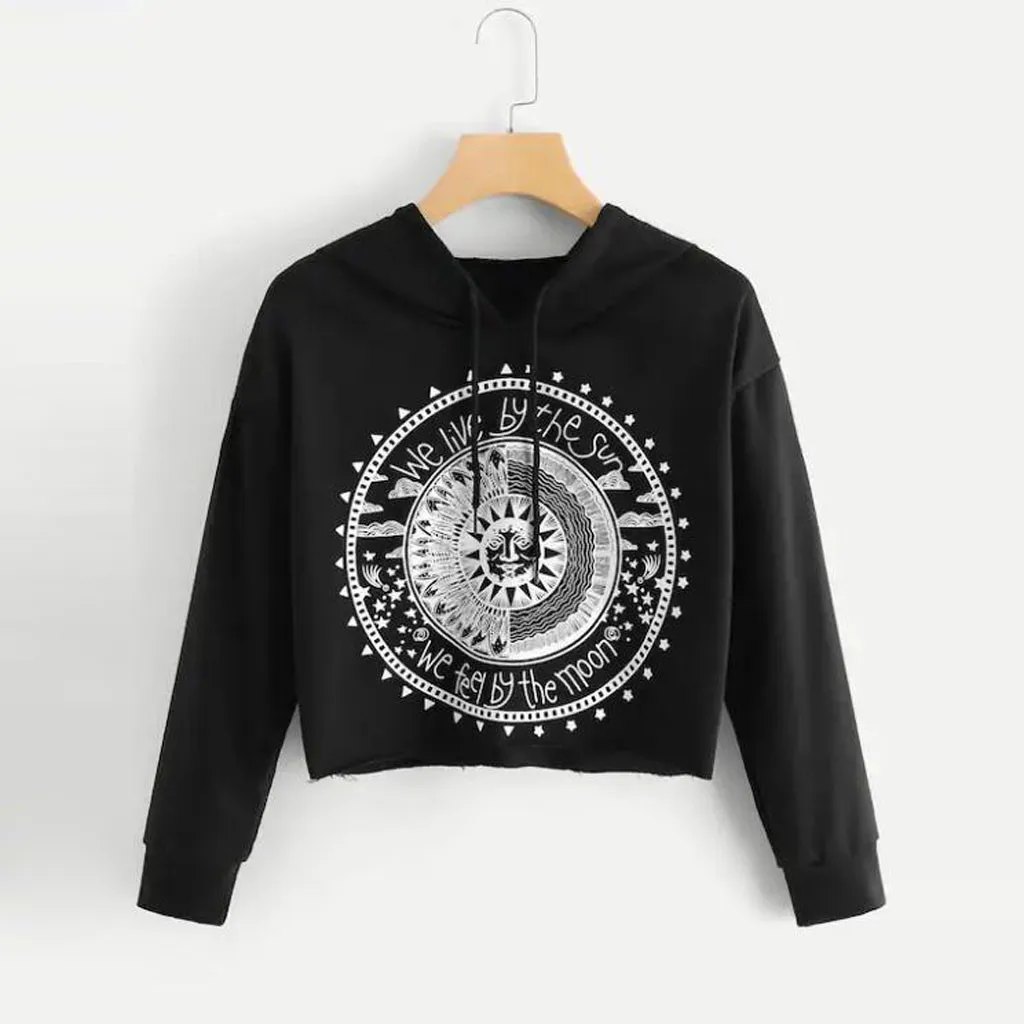 Для женщин Толстовка с длинными рукавами и принтом; Джемпер; Пуловер; Короткий укороченный топ
