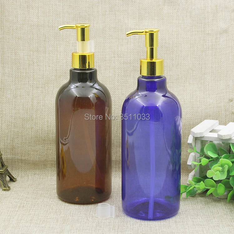 10pcs Large Size Empty Plastic Shampoo Body Cream Wash Refillable Bottle Blue Amber Green Emulsion Lotion Cream Gold Pump Bottle