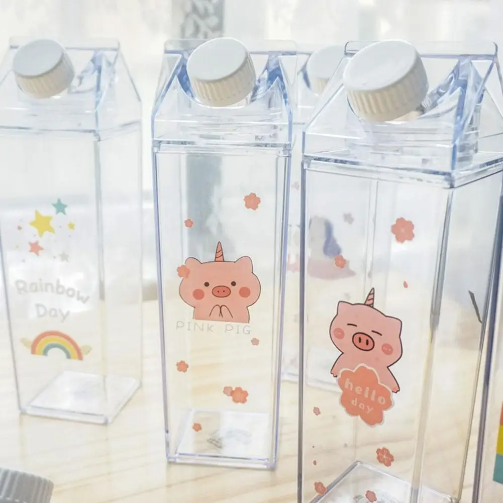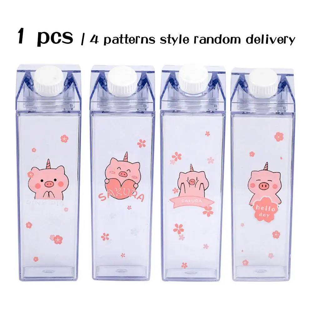 Уникальные мини милые бутылки для воды в форме молочной коробки прозрачный пластиковый мультфильм розовый поросенок бутылка для напитков кофе пивная посуда