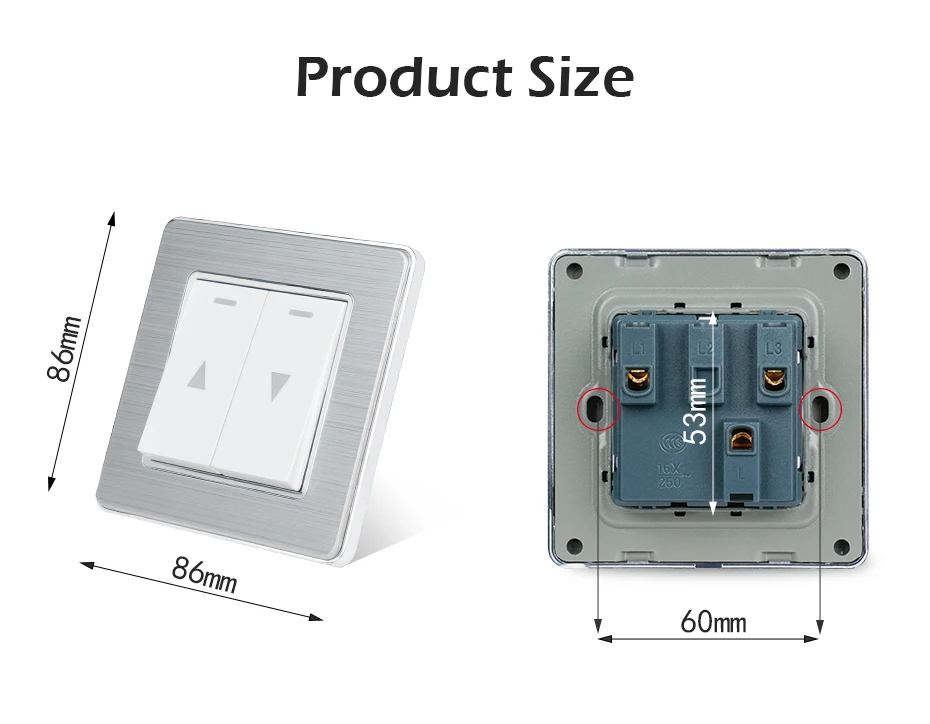 Esooli Шторы настенный выключатель переключатель для электрического Шторы грузоподъемное оборудование Нержавеющая сталь Панель
