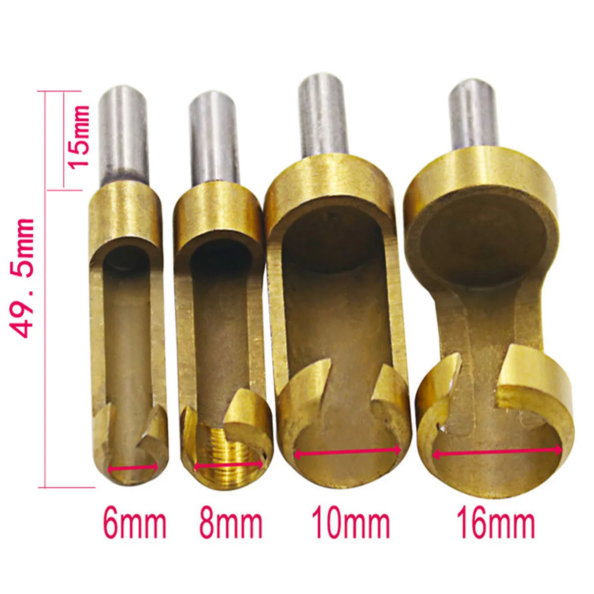 Название продукта: 4 шт. титановое покрытие пробкового бит Материал: Высокоуглеродистая сталь Характеристики продукта: 6 мм, 8 мм, 13 мм, 16 мм (относится к внутреннему диаметру пробкового сверла, т. Е. Диаметру пробки, которую можно вынуть). Диаметр ручки: около 6,35 мм Вес изделия: около 100 г (данные о весе только для справки, с учетом фактического продукта) Использование продукта: используется для открытия и обработки деревообработки круглая пробка. Его можно использовать на профессиональном оборудовании, например, скамейке и ручном сверле. Рекомендуется, чтобы сверло скамейки (потому что ручная дрель будет разбиваться), скорость бурения не должна быть слишком высокой при открывании отверстия. Если это нормально для образования дыма, вы можете остановить осмотр края и вы можете отремонтировать режущую кромку самостоятельно, чтобы убедиться, что режущая кромка острее! Обработка поверхности: титановое покрытие, поверхность золотисто-желтого цвета, не только красивый, но и антикоррозийный эффект!