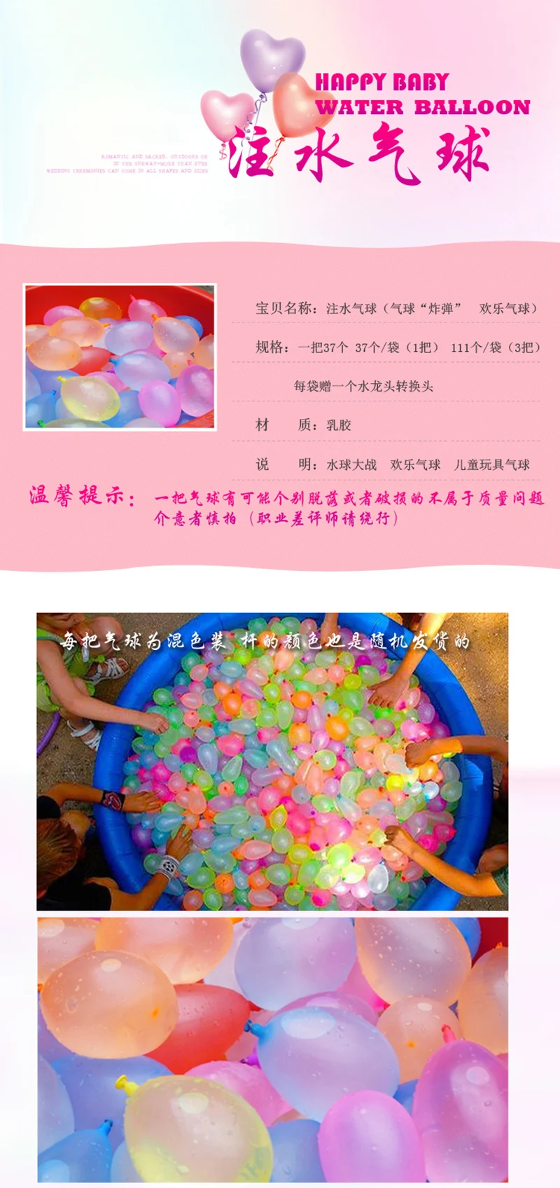 Название: воздушный шар для инъекций водыРазмер: 3 см перед впрыском водыВес: около 72 граммовМатериал: резинаСлучайный цветПодходящий возраст: 3 года или старшеОписание:Купите сейчас, дайте один интерфейс преобразования смесителя в мешокВодное поло, праздничные воздушные шары, Детские игрушечные шарыИнтерфейс преобразования может одновременно заполнить 37 воздушных шаров водой, очень быстро, не завязывая рот воздушного шара, автоматически запечатывая рот воздушного шараВсе продукты, произведенные нашей фабрикой, могут пройти множество международных испытаний, таких как EN71, CE, фталат и так далее. Протокол испытаний может быть произведенВсе наши продукты основаны на натуральном латексе, который является безопасным, нетоксичным и не наносит вреда человеческому организму.Примечание:1. Возможны отклонения на 1-2 см из-за ручного измерения2. Из-за разницы между различными дисплеями изображение может не отражать фактический цвет проекта.3. В каждой посылка может быть 1-2 перерыва, пожалуйста, не обращайте вниманияВнимательно прочитайте следующие вопросы, чтобы сделать вашу покупку проще
