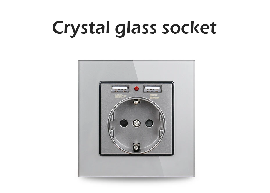 Esooli белая Хрустальная стеклянная панель двойной usb зарядный порт 2.1A 16A Россия Испания USB настенная розетка ЕС розетка