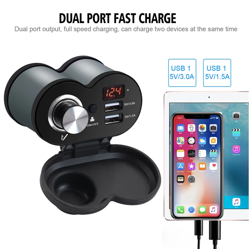 Название продукта: мотоцикл двойной USB многофункциональный мобильный телефон зарядное устройство двойной USB (с вольтметром, прикуриватель)