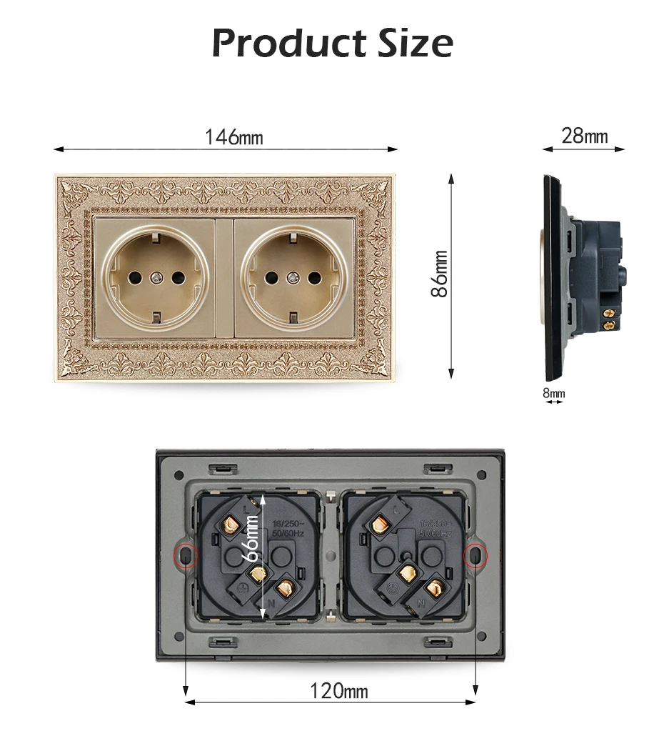 Esooli 16А двойное гнездо питания стандарта ЕС 4D тиснение Ретро цинковый сплав панель настенная розетка питания AC 110 ~ 250 В золото Красочные