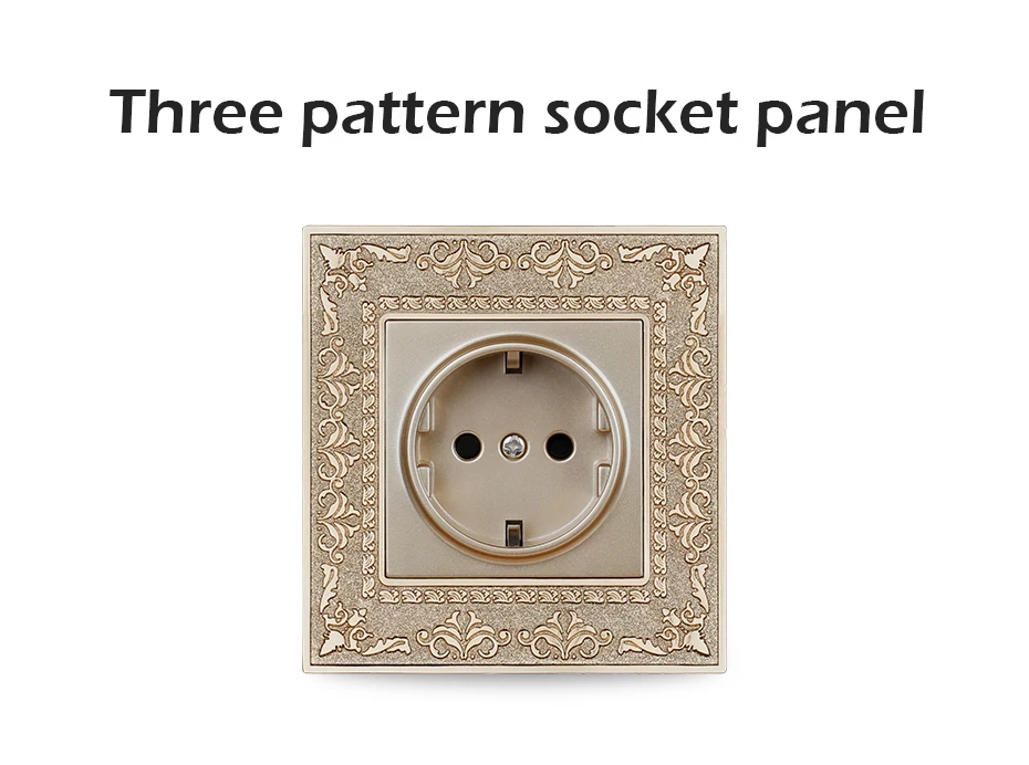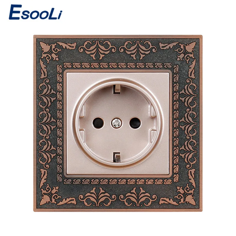 Esooli 16A EU стандартная Золотая розетка 4D тиснение Ретро панель из цинкового сплава настенная розетка переменного тока 110 ~ 250 В