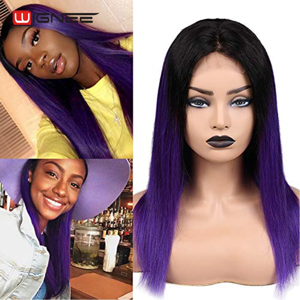 Wignee 4*4 Кружева Закрытие прямые волосы фиолетовый человеческие парики для чернокожих женщин бразильские волосы бесклеевая средняя часть швейцарские кружева человеческие парики