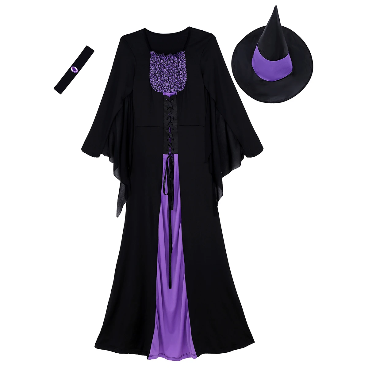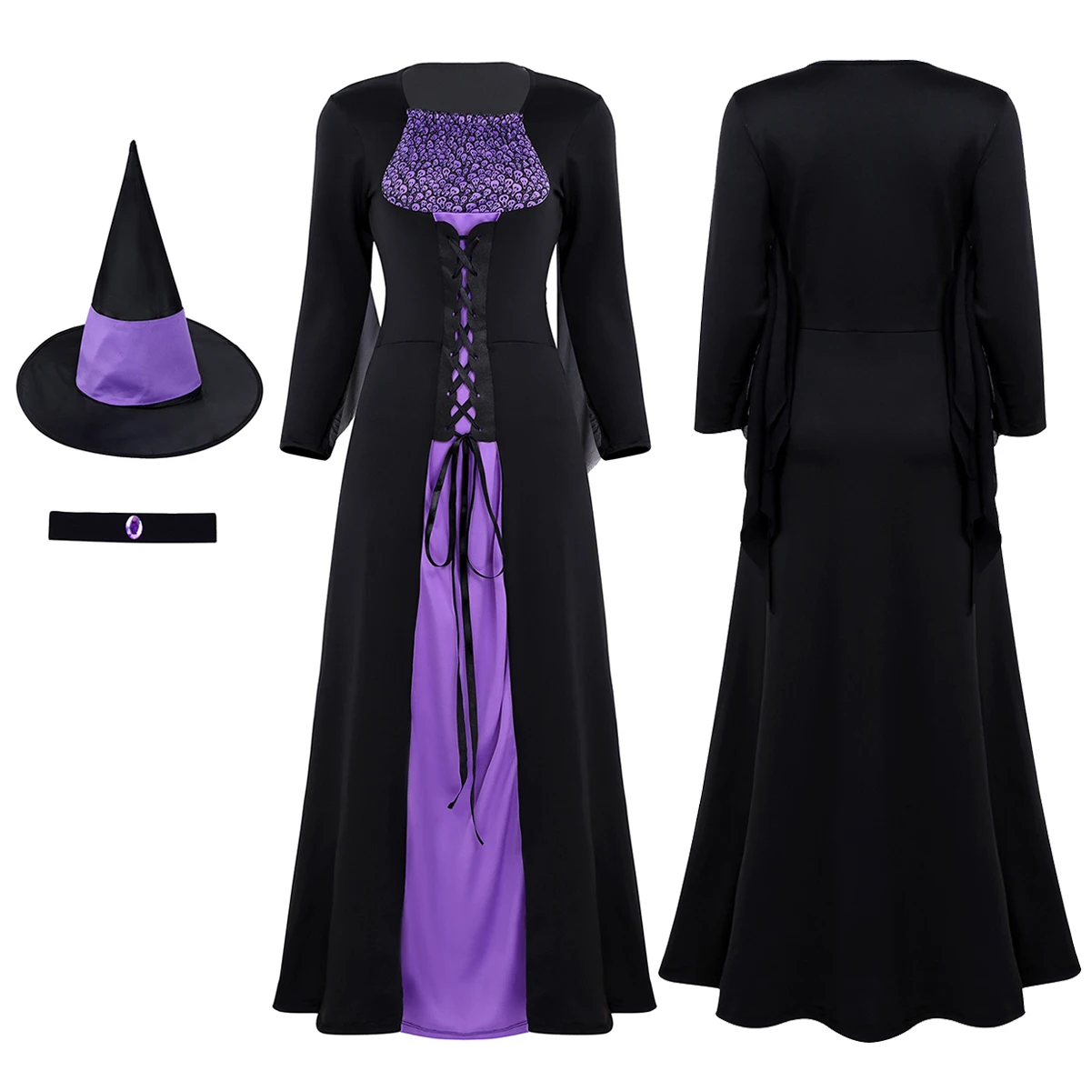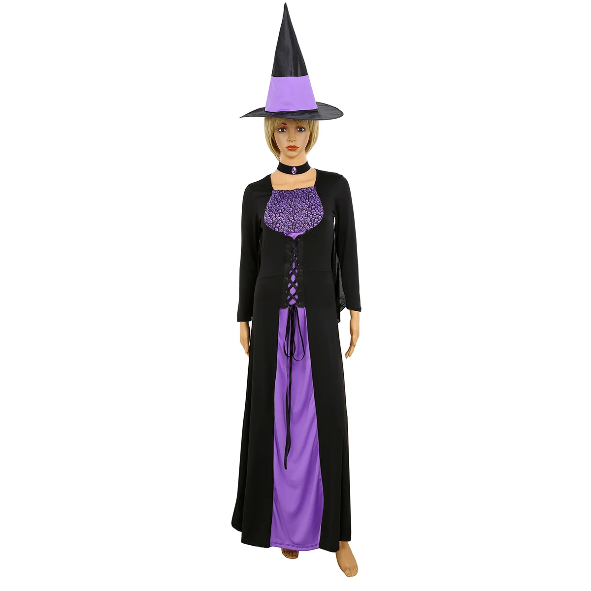 В комплекте с острым капюшоном и эластичным ожерельем, очень мягкие и удобные в носке. Лучший готический костюм ведьмы.