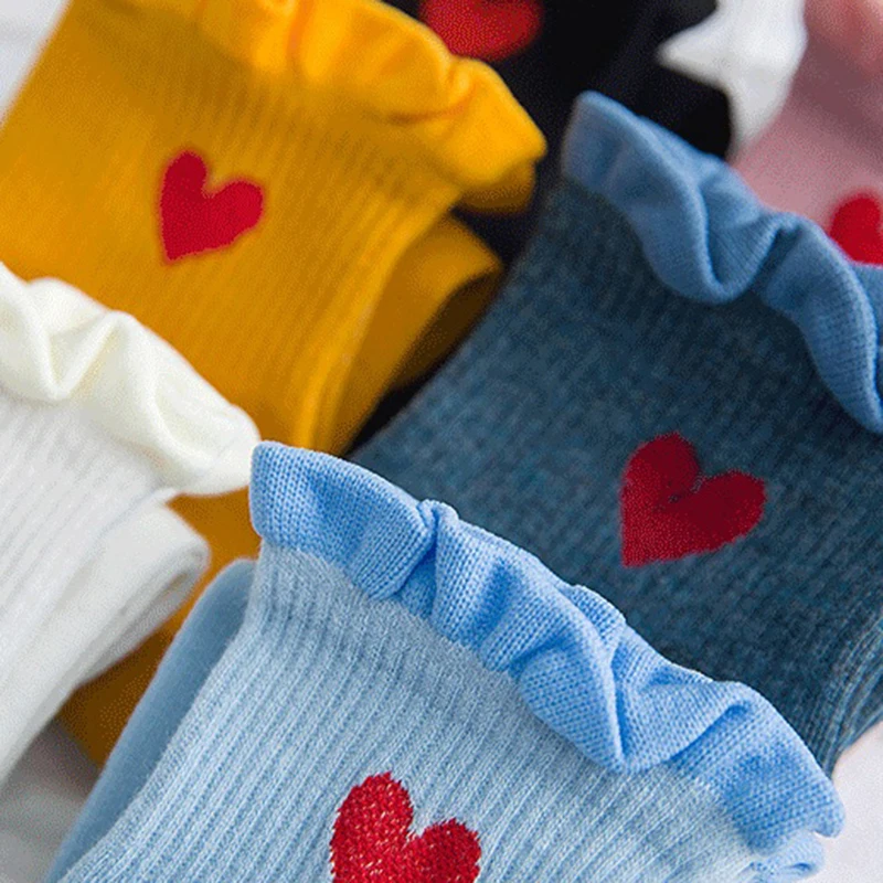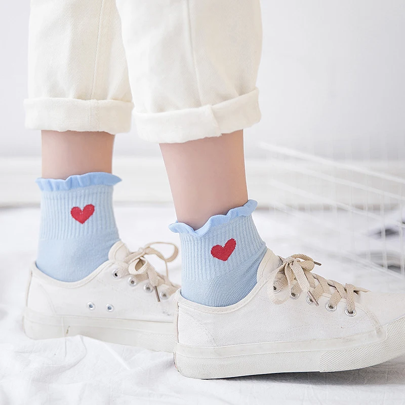 Женские носки, 1 пара, Длинные повседневные дышащие милые носки, хлопковые милые носки с сердечками