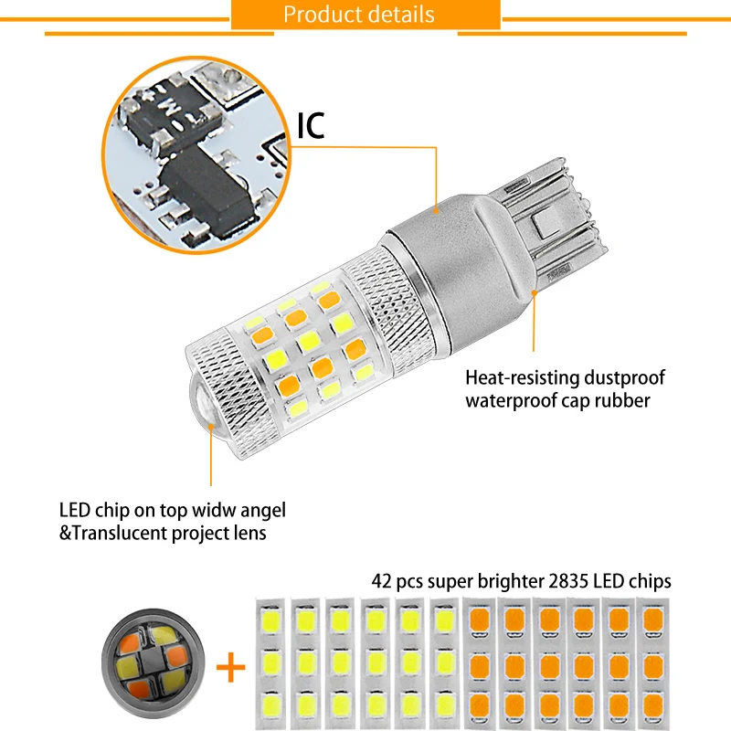 2 шт. T25 3157 7443 двухцветный светодиодный светильник с поворотным сигналом белый Янтарный 42smd 2835 P27 3057 дневной ходовой светильник 12В Автомобильный Стайлинг