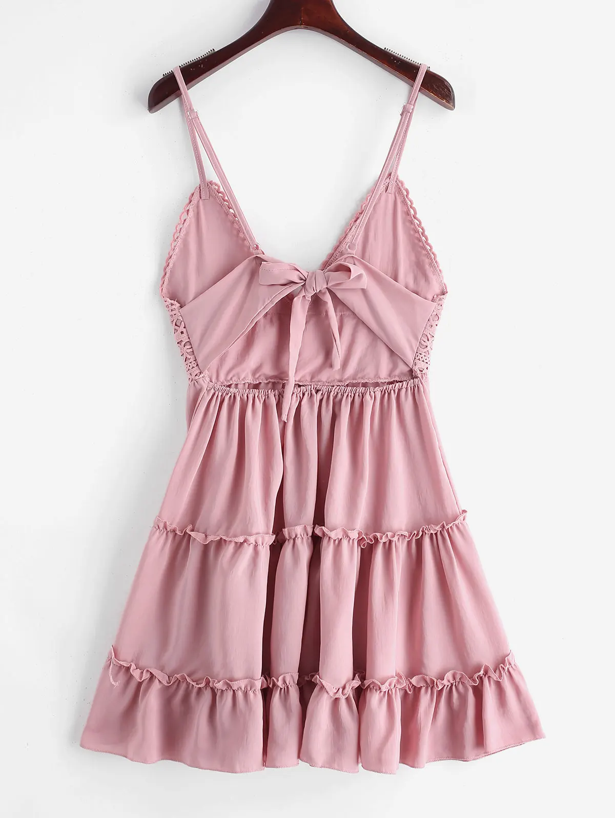 ZAFUL сексуальное вязаное на бретельках расклешенное платье с рюшами, завязанное сзади, летние женские платья, женская одежда для отпуска, мини-платье на бретелях с завязками, а-силуэт