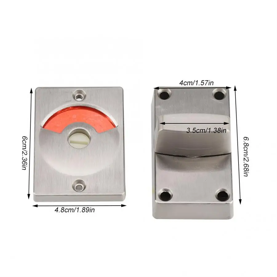 Этот болт изготовлен из цинкового сплава и нержавеющей стали, прочный и долговечный для длительного использования. Используется для общественного туалета, туалета и ванной комнаты, чтобы указать, что свободен или занят. Красный (включенный) и зеленый (свободный) цвет легко распознает для универсальной индикации. Легко устанавливается, подходит для перегородки и перегородки. Подходит для общественных туалетов, таких как аэропорт, станция, больница, торговый центр и офисное здание.
