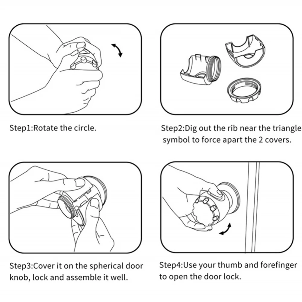 -Простота установки, без инструментов, без клея, без вреда для ручки двери. Закройте 2 части корпуса чехол на дверные ручки, и двойная защита действует при закрытии крышки. Легко снимается, легко снимается отверткой.