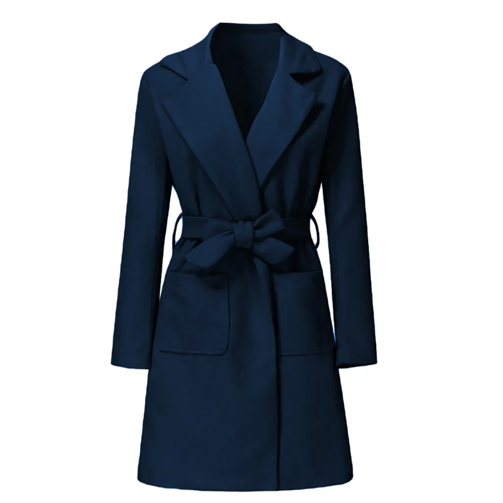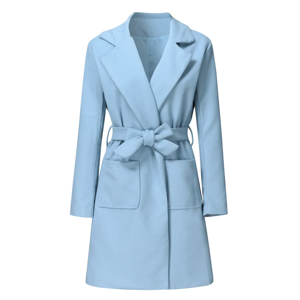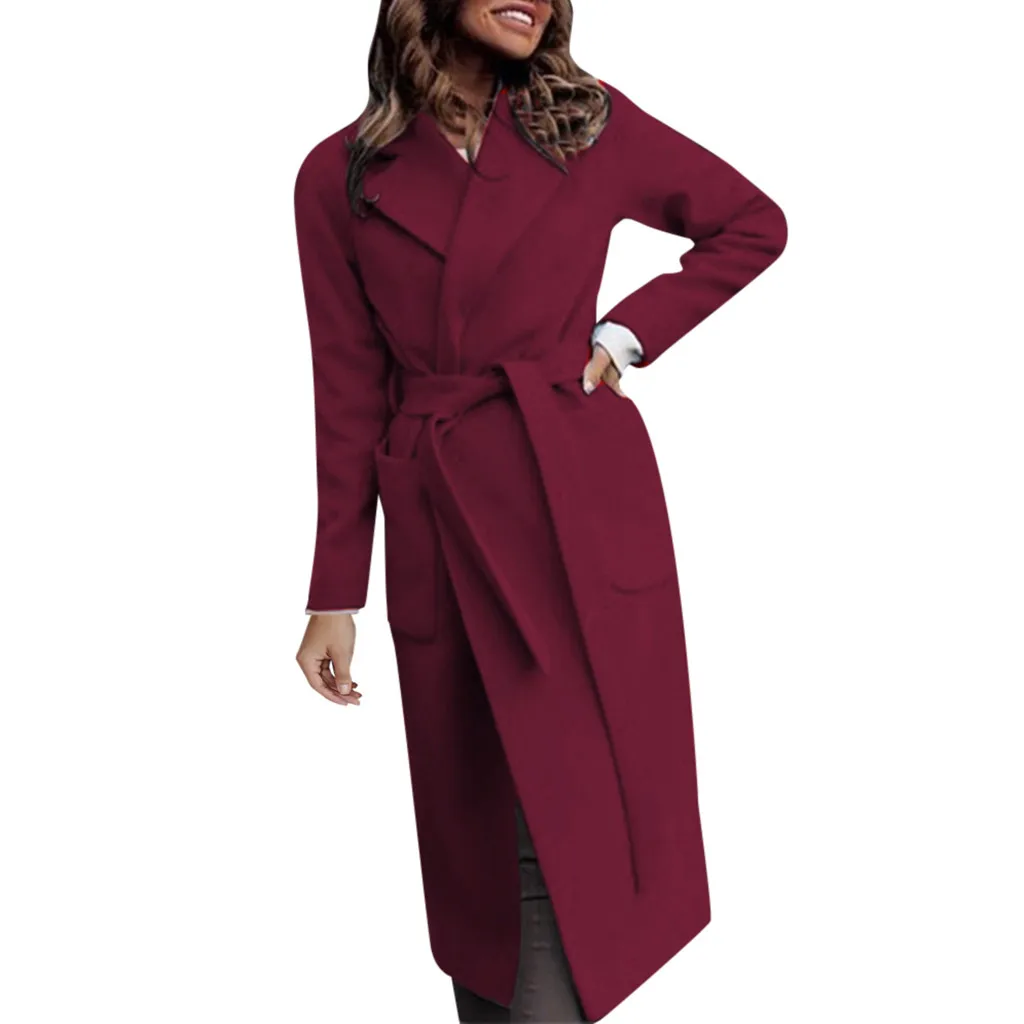 Женская мода с длинным рукавом куртки сплошной цвет свободного покроя пальто с поясом Топы