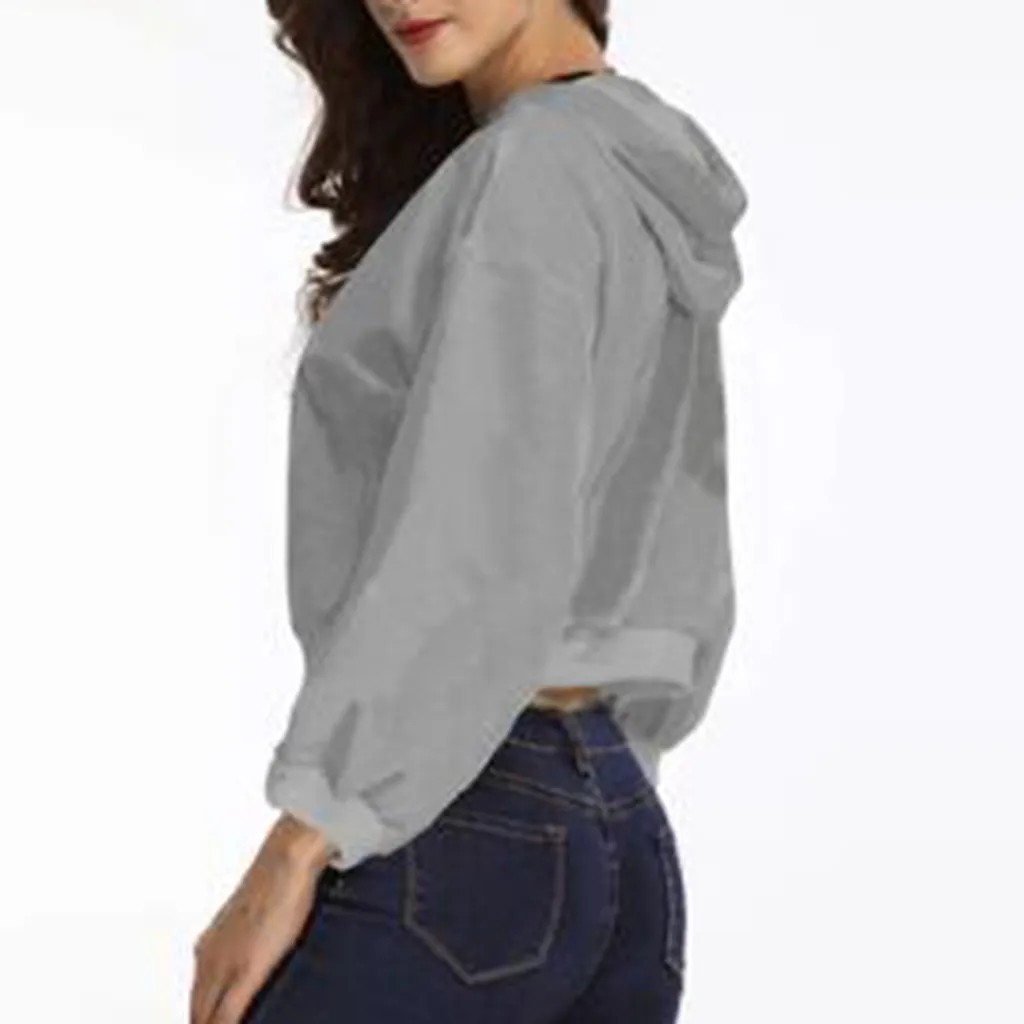 Женская однотонная толстовка с капюшоном с длинным рукавом, повседневные топы, блузка, пуловер, толстовка