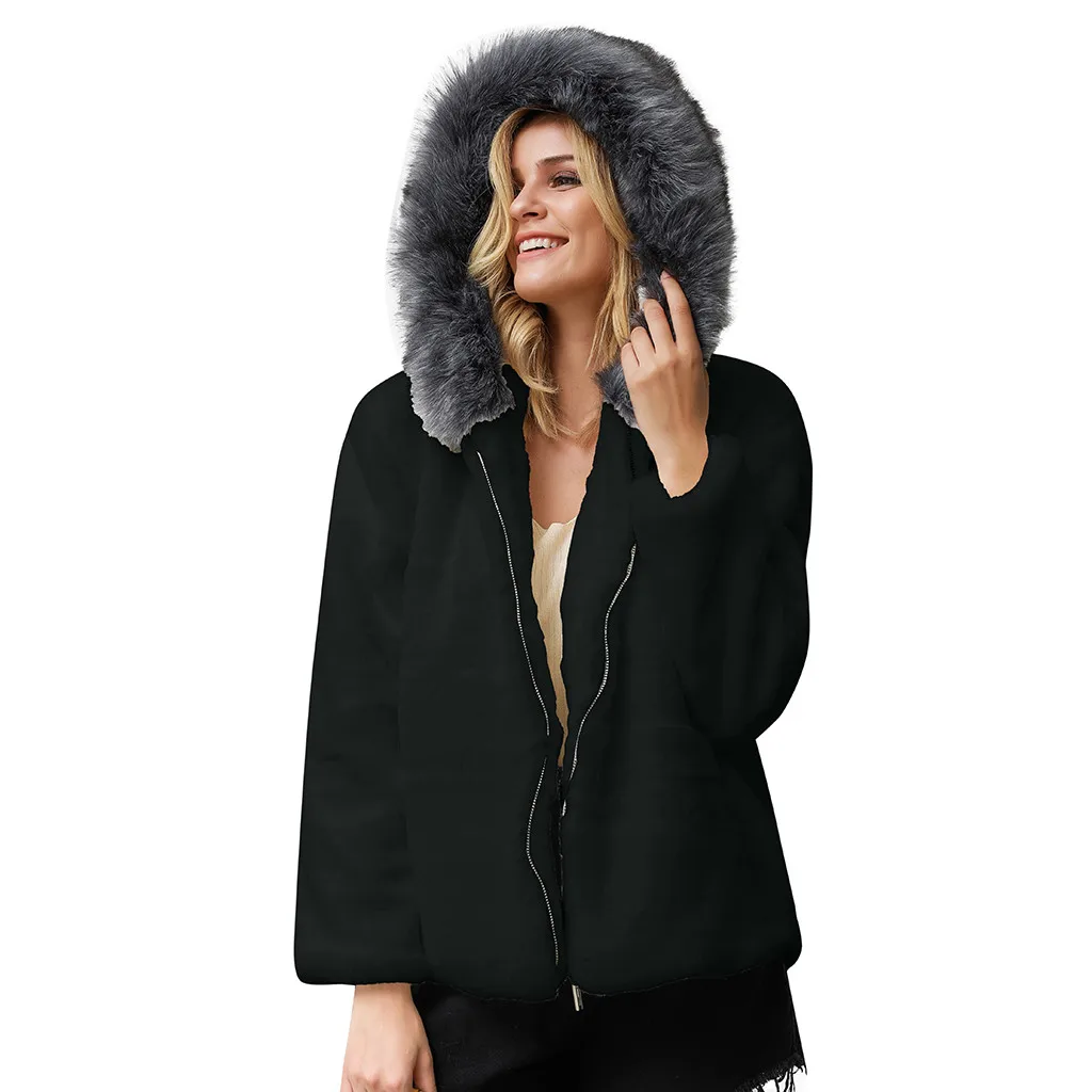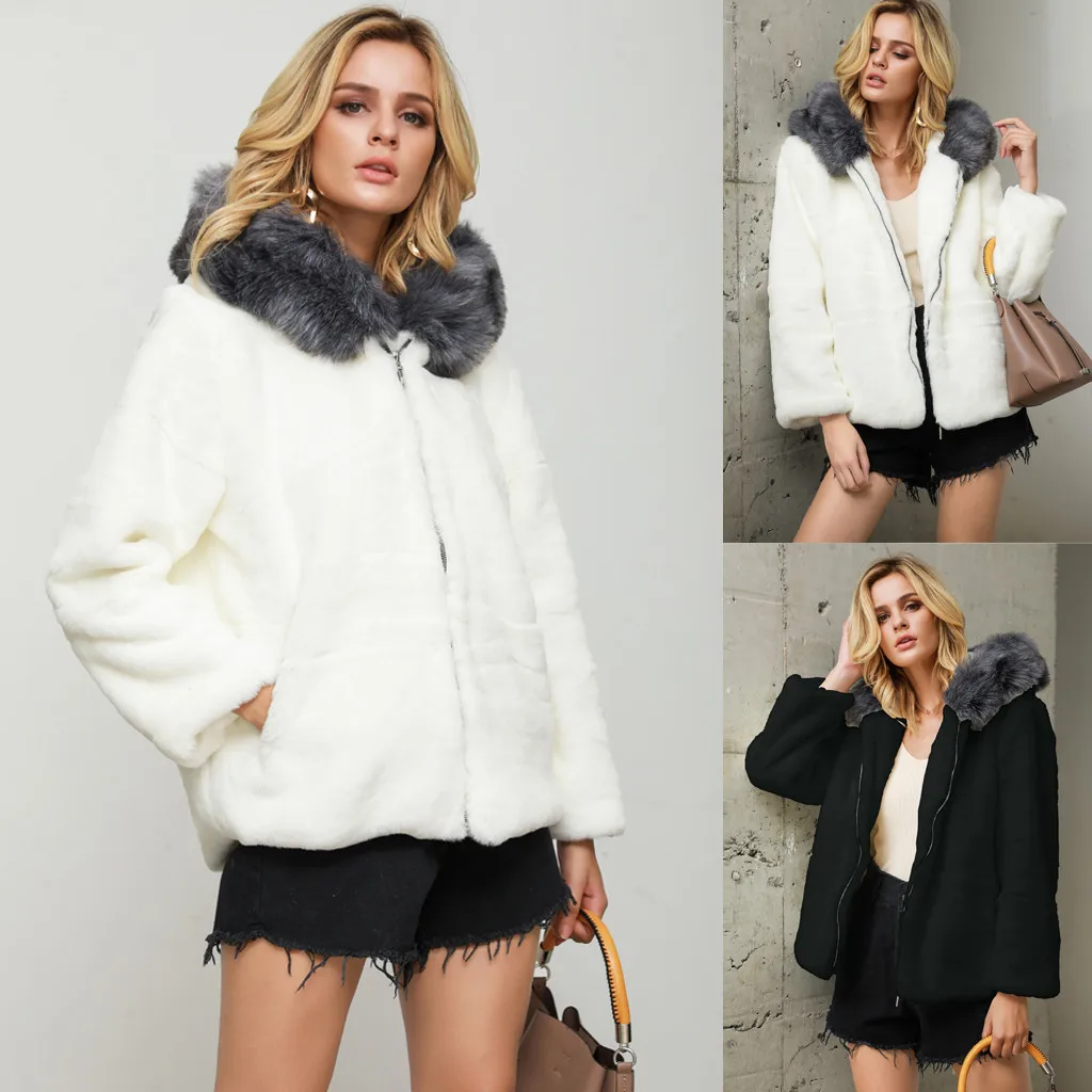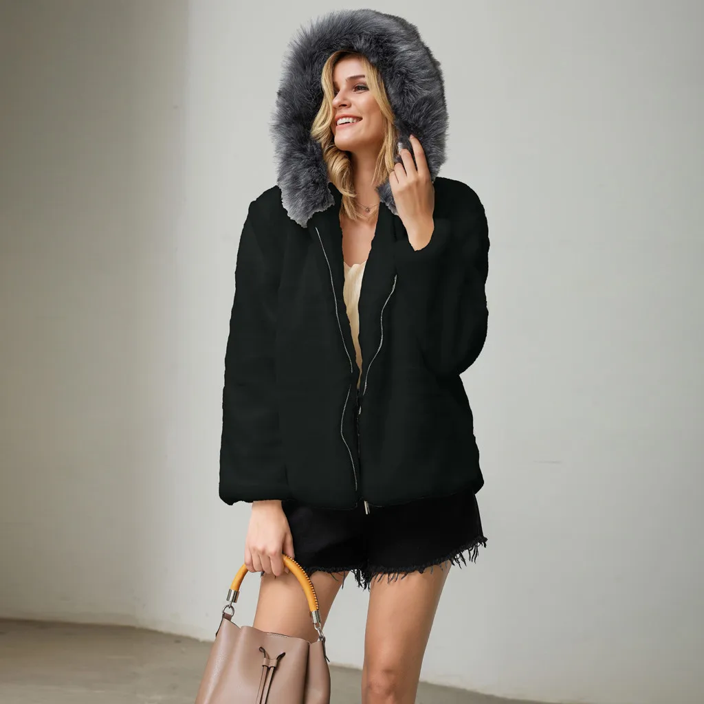 Женский модный однотонный кардиган из искусственного меха с капюшоном, карманами, пальто на молнии