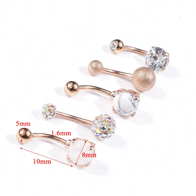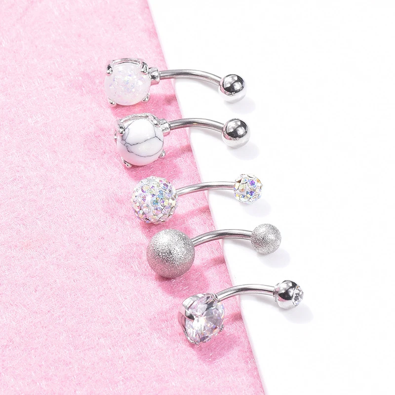 5 шт. женские пупковые кольца, медицинская сталь, Хрустальный живот, пирсинг, ювелирные изделия