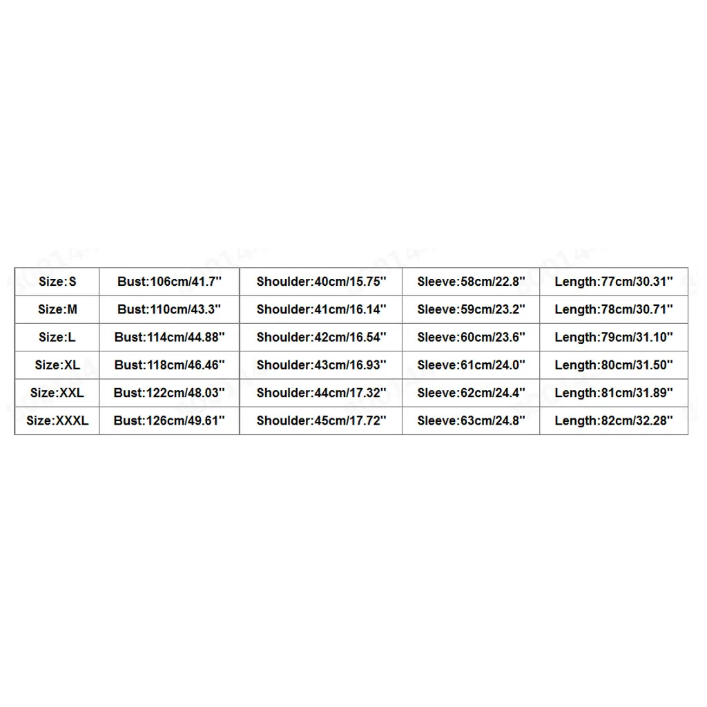 РазмерБюстПлечоРукавДлинаS106 см/41,7"40 см/15,75''58 см/22,8"77 см/30,31''М110 см/43,3"41 см/16,14''59 см/23,2"78 см/30,71''L114 см/44,88''42 см/16,54''60 см/23,6"79 см/31,10''XL118 см/46,46''43 см/16,93''61 см/24,0"80 см/31,50''XXL122 см/48,03''44 см/17,32''62 см/24,4"81 см/31,89''XXXL126 см/49,61''45 см/17,72''63 см/24,8"82 см/32,28''