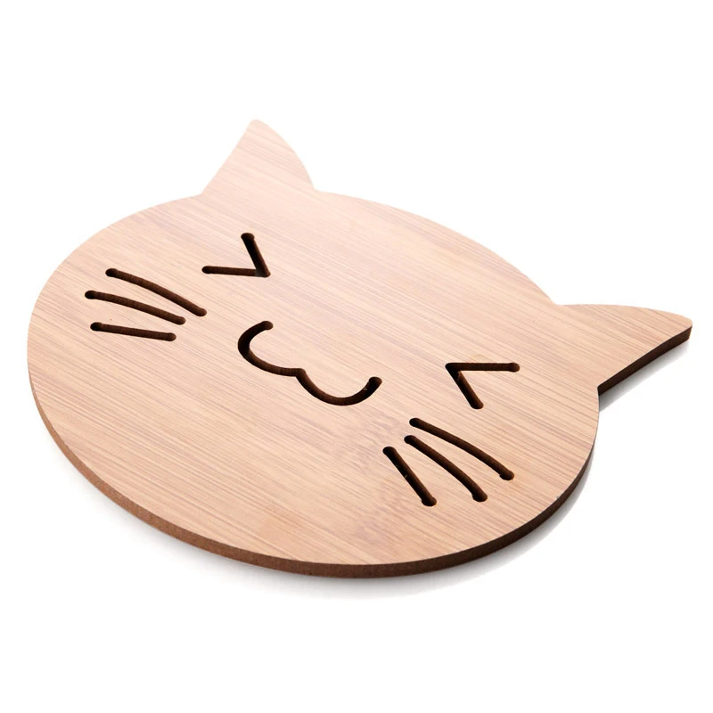 1. Бамбуковый изоляционный коврик, милая мультяшная форма, четкий узор, простой и щедрый, толстая деревянная доска эффективно изолирована, защищает Рабочий стол от ожогов