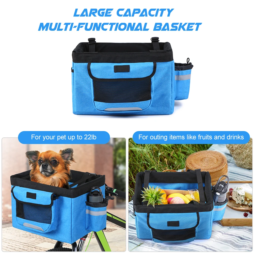 Это хороший велосипедный переносчик для кошек, собак, кроликов, а также отлично подходит для походов для кемпинга и пикника. Легко крепится на стандартный руль велосипеда со специальной пряжкой или отсоединяется, чтобы быть корзинкой для покупок с плечевым ремнем.