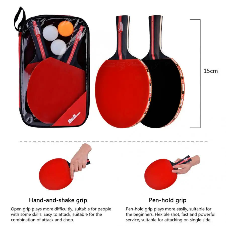 Boliprince весло для понга, 2 игрока, ракетка для настольного тенниса с 3 мячиками для встряхивания рук, игроков для настольного тенниса, аксессуары
