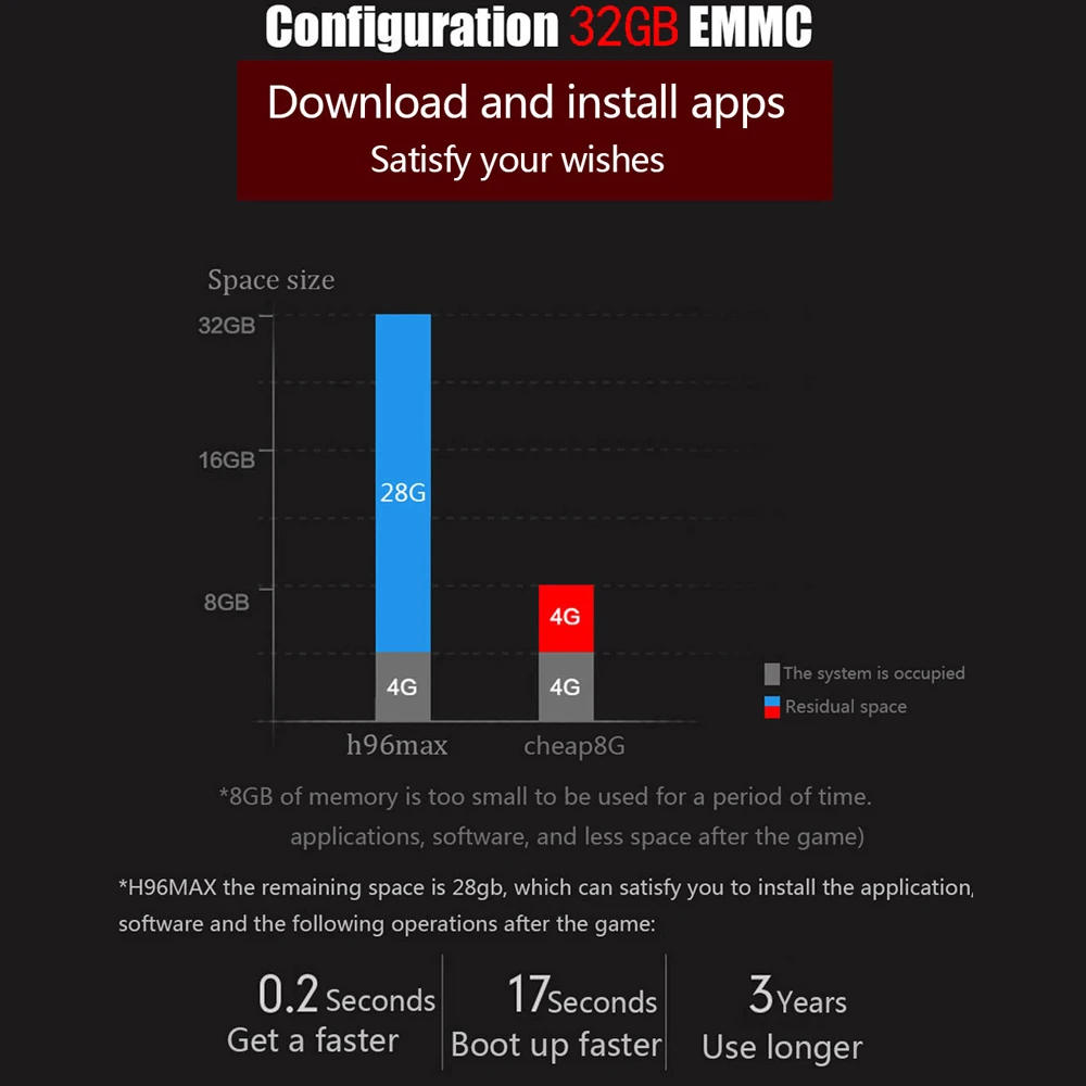 Высокая конфигурация напрямую влияет на скорость работы верхней коробки и плавность управления, убедитесь, что вы смотрите телевизор и играете в игры плавно.