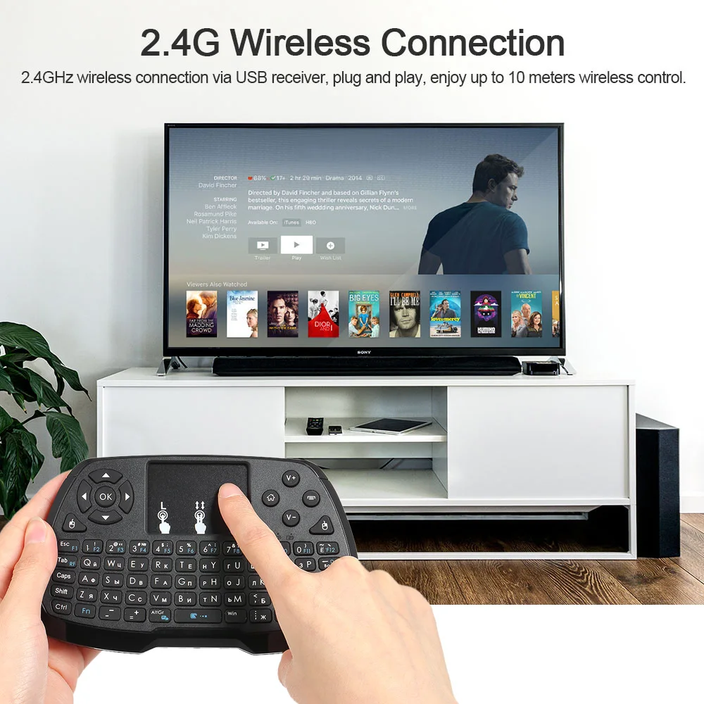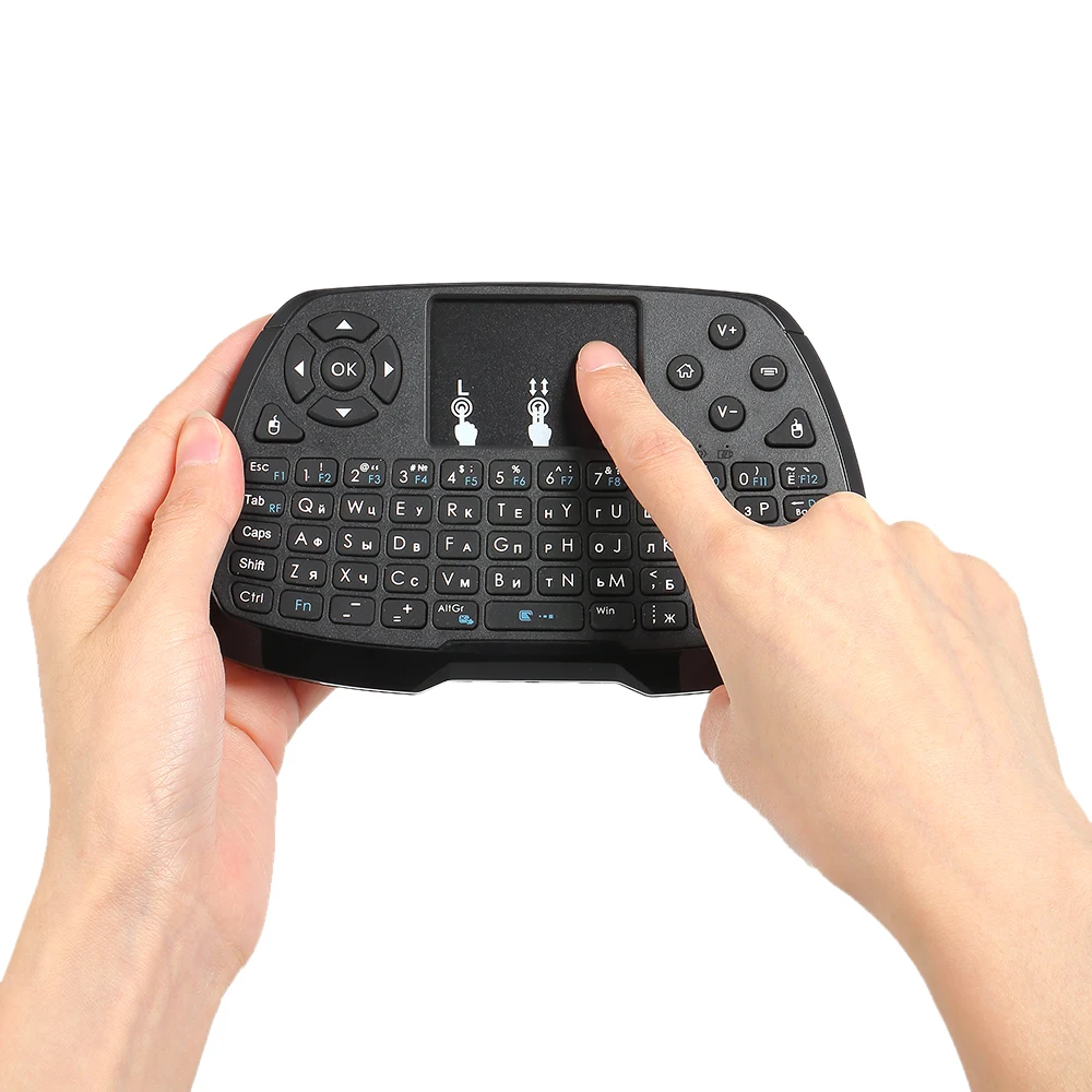 Это 2,4 ГГц Беспроводная мини-клавиатура QWERTY и тачпадом комбо с приемником интерфейса USB. Подключи и работай, просто и гладко. Мини-клавиатура обеспечивает удобный ввод текста, и вы можете управлять устройствами на диване.