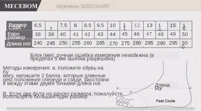 Пожалуйста, выберите размер в зависимости от длины ступни.