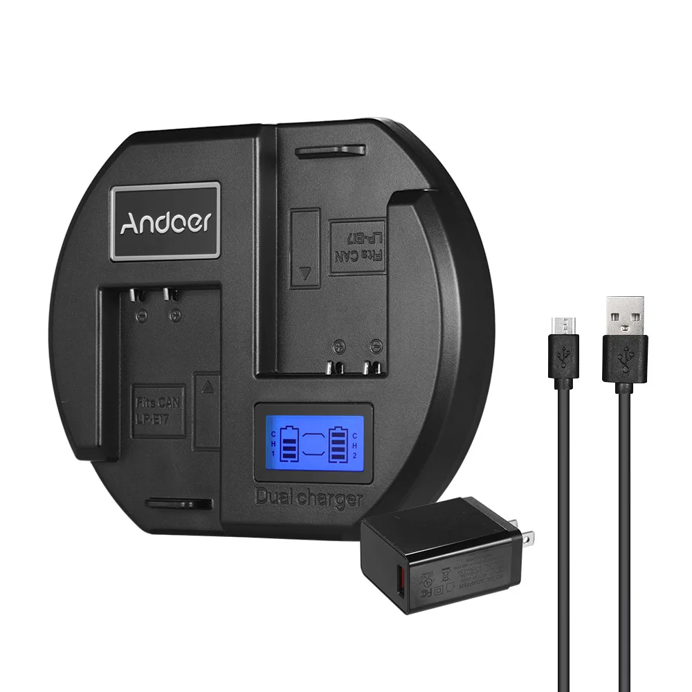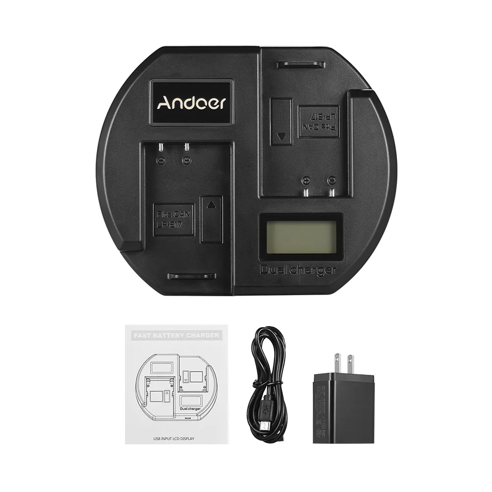 1 * Двухканальное зарядное устройство Andoer для Canon LP-E17