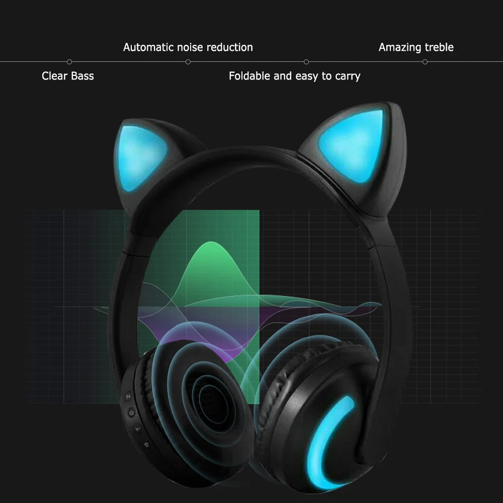 Этот светящийся кошачьими ушками Bluetooth наушники специально разработан для любителей музыки и модные энтузиастов, в котором есть передовые технологии Bluetooth 4,2 + EDR технология, 3,5 мм аудио порт, функция "без рук" и светящиеся кошачьими ушками на капюшоне. Это идеальный подарок для детей, подружек и косметологов.