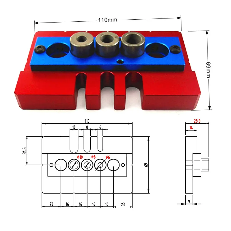 100% новый и высокое качество Он изготовлен из алюминиевого сплава промышленного класса с хорошей прочностью и высокой коррозионной стойкостью, долговечен в использовании Поставляется с тремя буровыми втулками для удобной работы Этот Дырокол используется для позиционирования на дереве С 3 гнездами, удобными для крепления сверла на дереве.