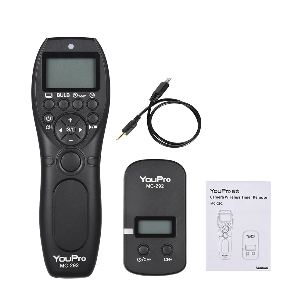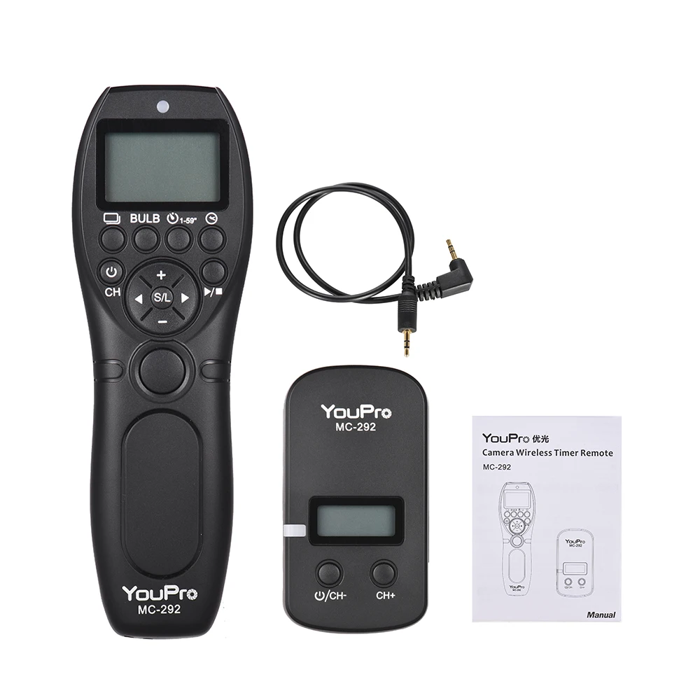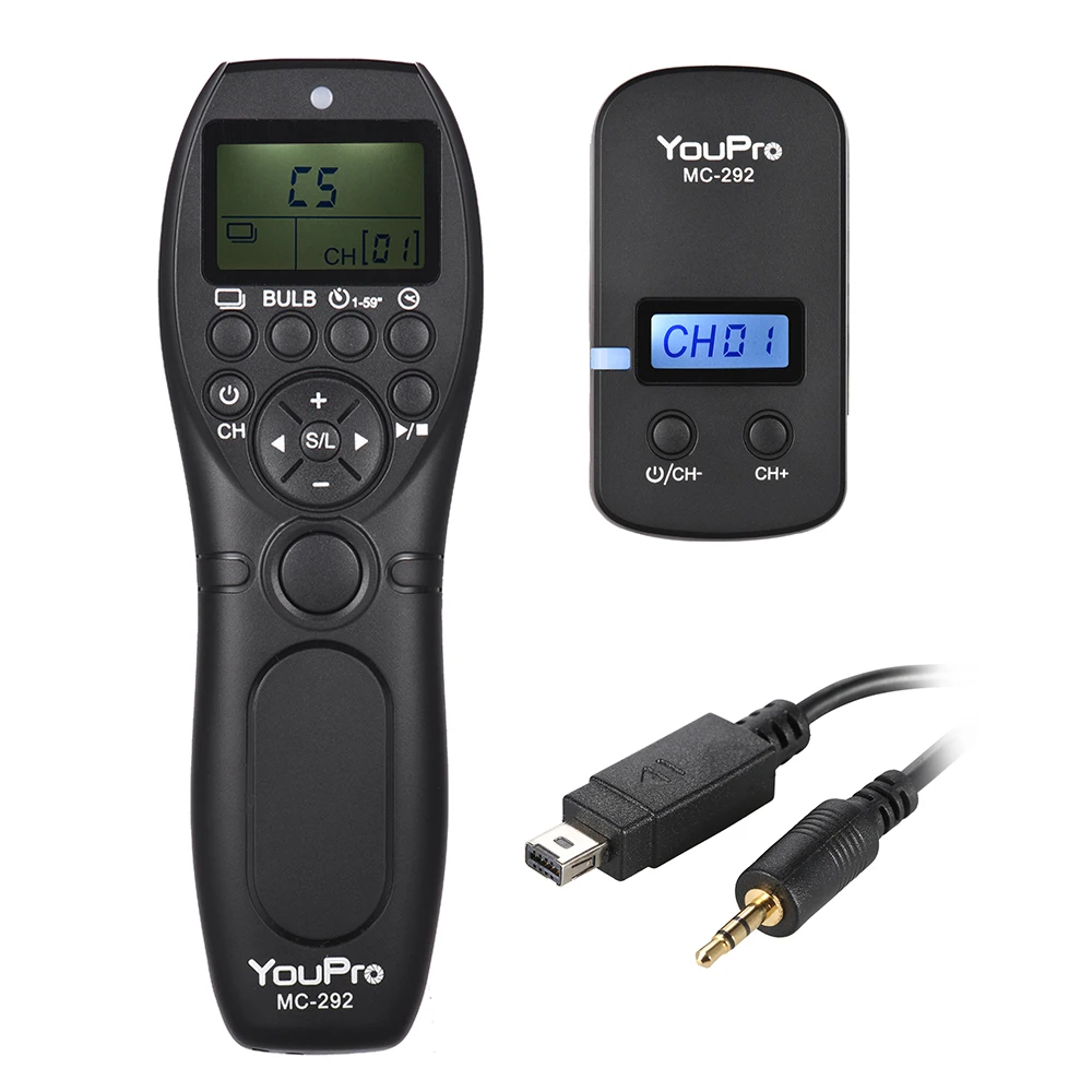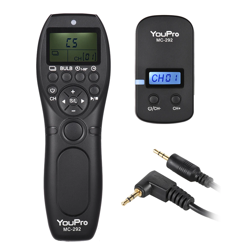 MC-292-это высокопроизводительный беспроводной пульт дистанционного управления таймером. Доступен вариант проводной или беспроводной в одиночном, низкоскоростном/высокоскоростном непрерывном режиме, лампочка, задержка съемки и таймер планирования режима съемки.