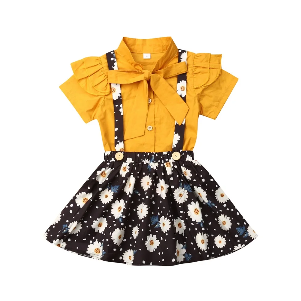 1 x Shirt Tops & 1 x Floral Bib Skirts