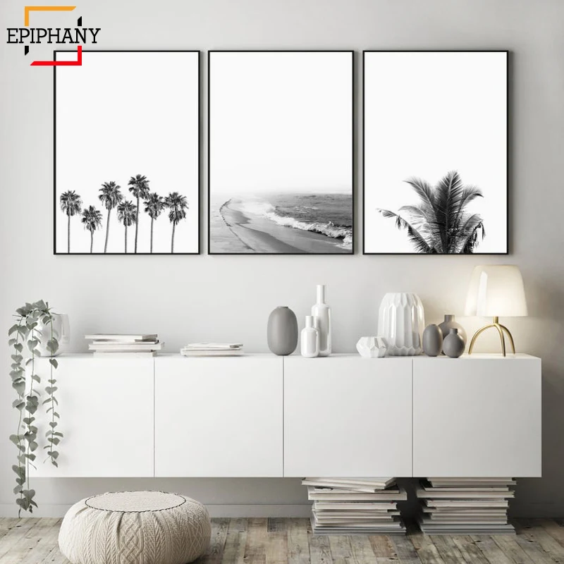 Современные настенные художественные принты постер с берегом черно-белый принт с изображением океана и пляжа тропический Декор минималистичные настенные картины для гостиной