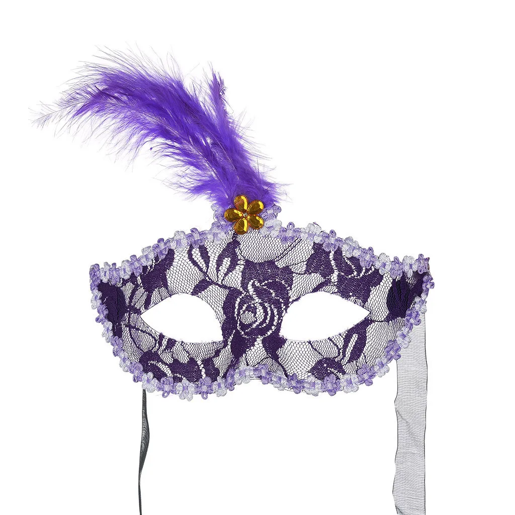 Dreamowl Sequins Lace Floral Mardi Gras Masquerade Costume Feather Mask