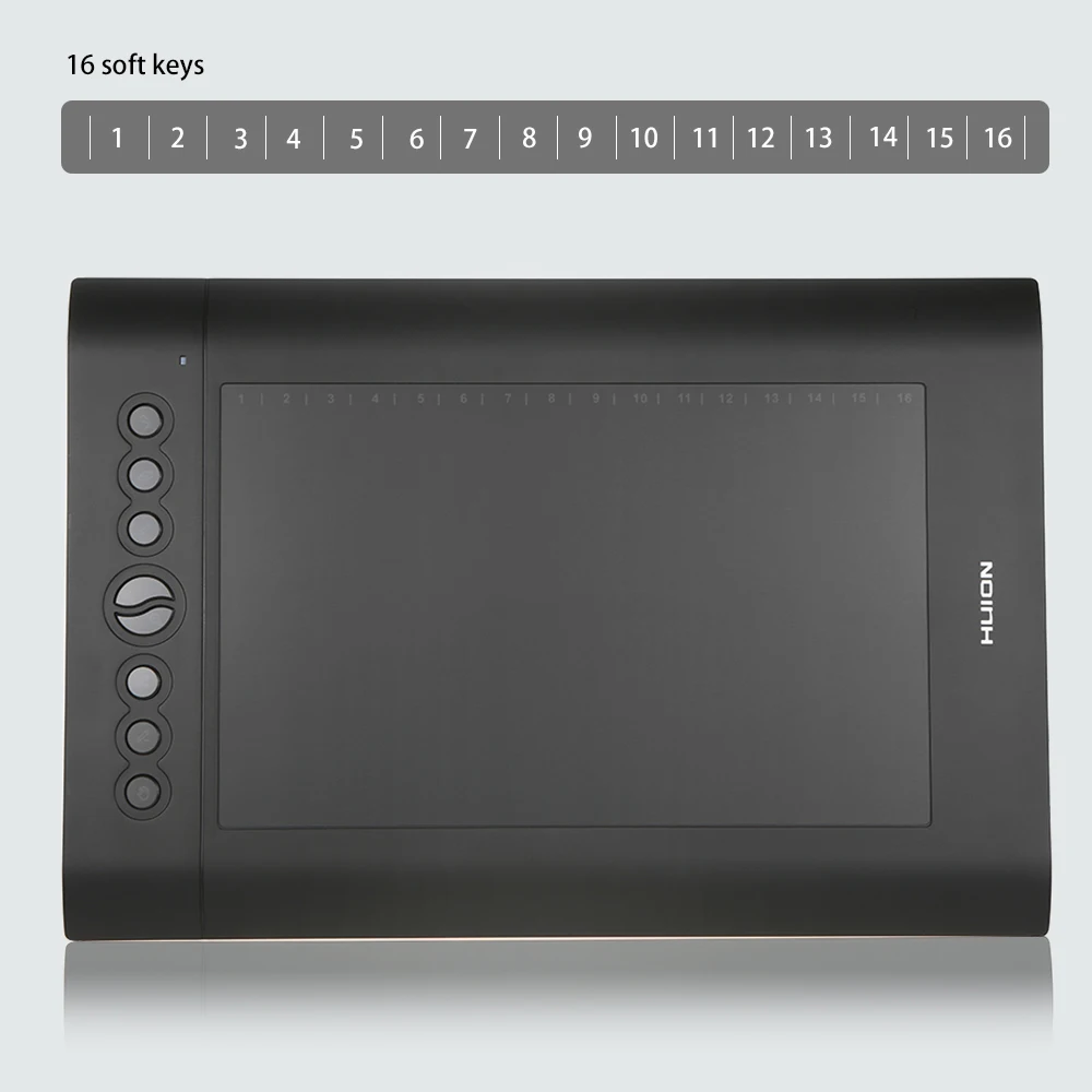 8 Экспресс-клавиш на левой стороне планшета и 16 мягких клавиш на верхней части активной области, плюс две кнопки ручки, все настраиваемые и легко настраиваемые. Вы можете адаптировать настройки к вашим предпочтениям.