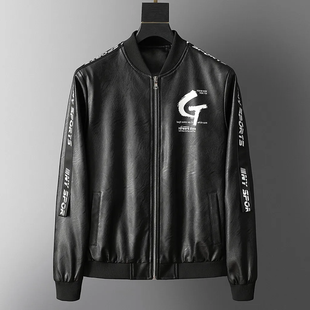 Мужская Осенняя повседневная куртка из искусственной кожи с модным принтом в стиле пэчворк